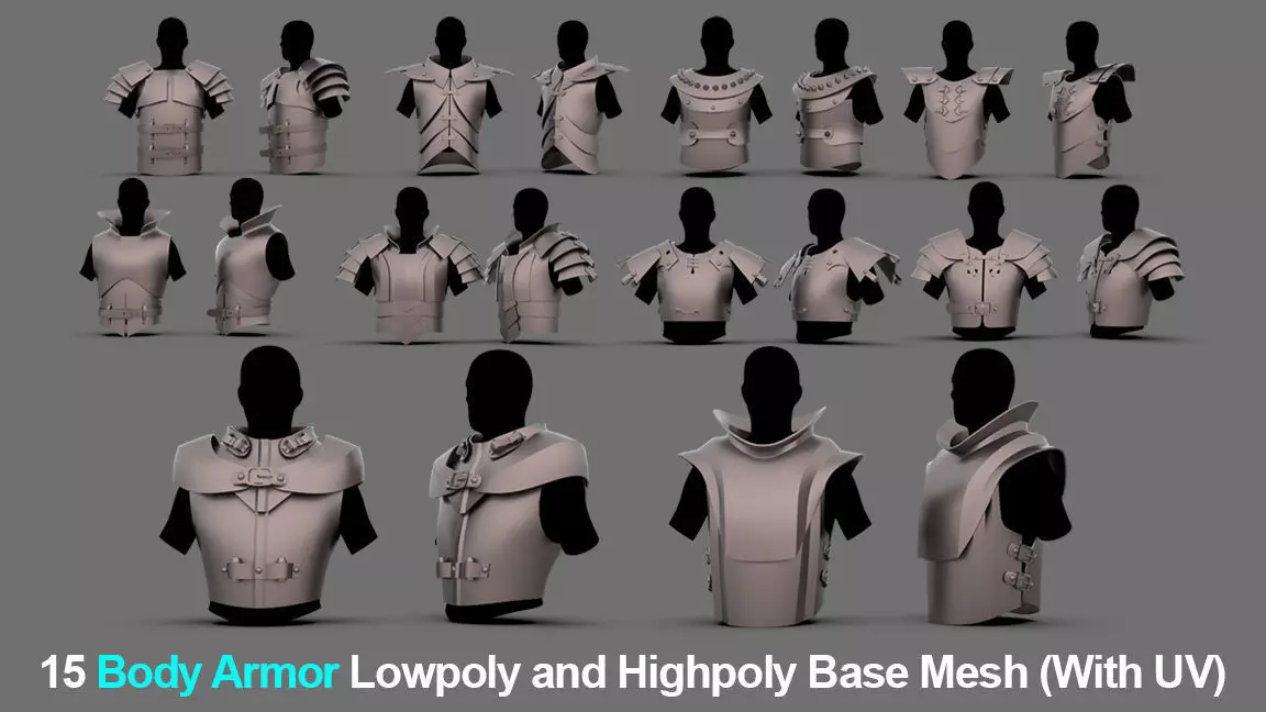 15 Body Armor Lowpoly and Highpoly Base Mesh (With UV)