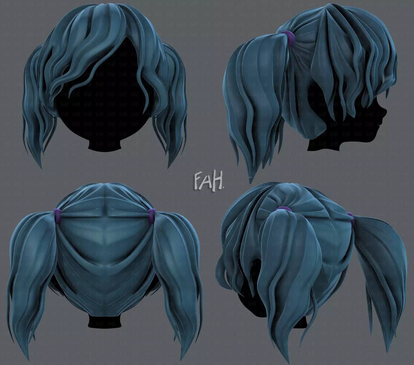 This is 3D Hair style for girl V70. It is cartoon hair for animation and game. Model clean topology based on quads and completely UVunwrapped. The hair is pretty low polygon.