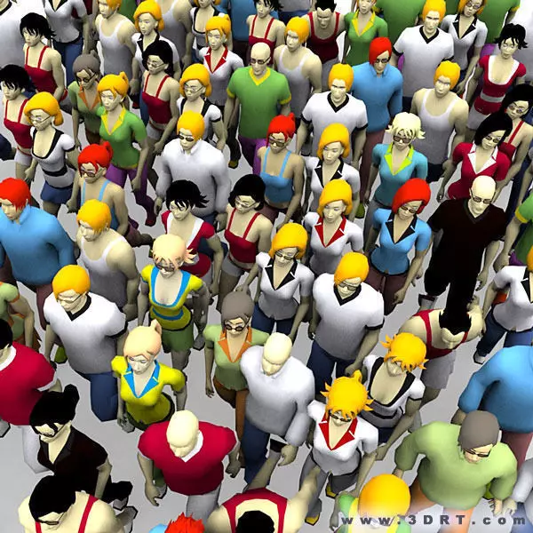 3D people avatars. Construction kit allows to build hundreds of male and female characters. Models don't use any bitmap textures only procedural colors. This allows to achieve high performance with lots of characters in a single application. Custom colors can be changed for skin, clothes, eyes, hair, etc. Each file includes: heads, hairs and glasses mesh versions.