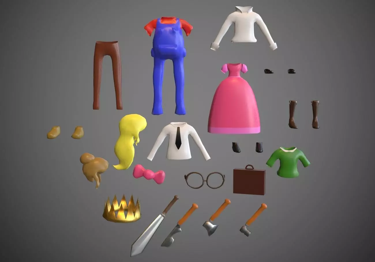 The model has material settings that define how surfaces look (color, shine, transparency, etc.).
