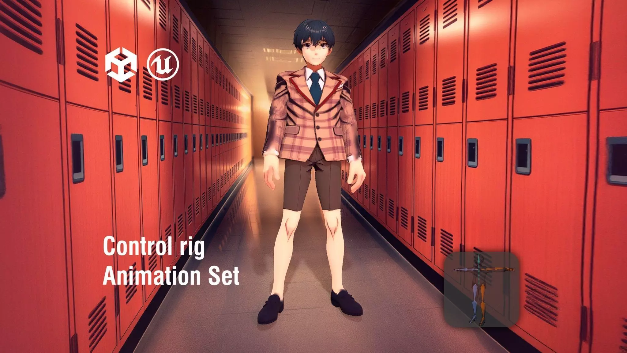 This model depicts an anime boy musician in a vintage 1960s school uniform, complete with a plaid blazer and loafers. The character is designed for various applications, including animation, games, and virtual environments. Each model has 3 levels of detail with QUAD polygons: