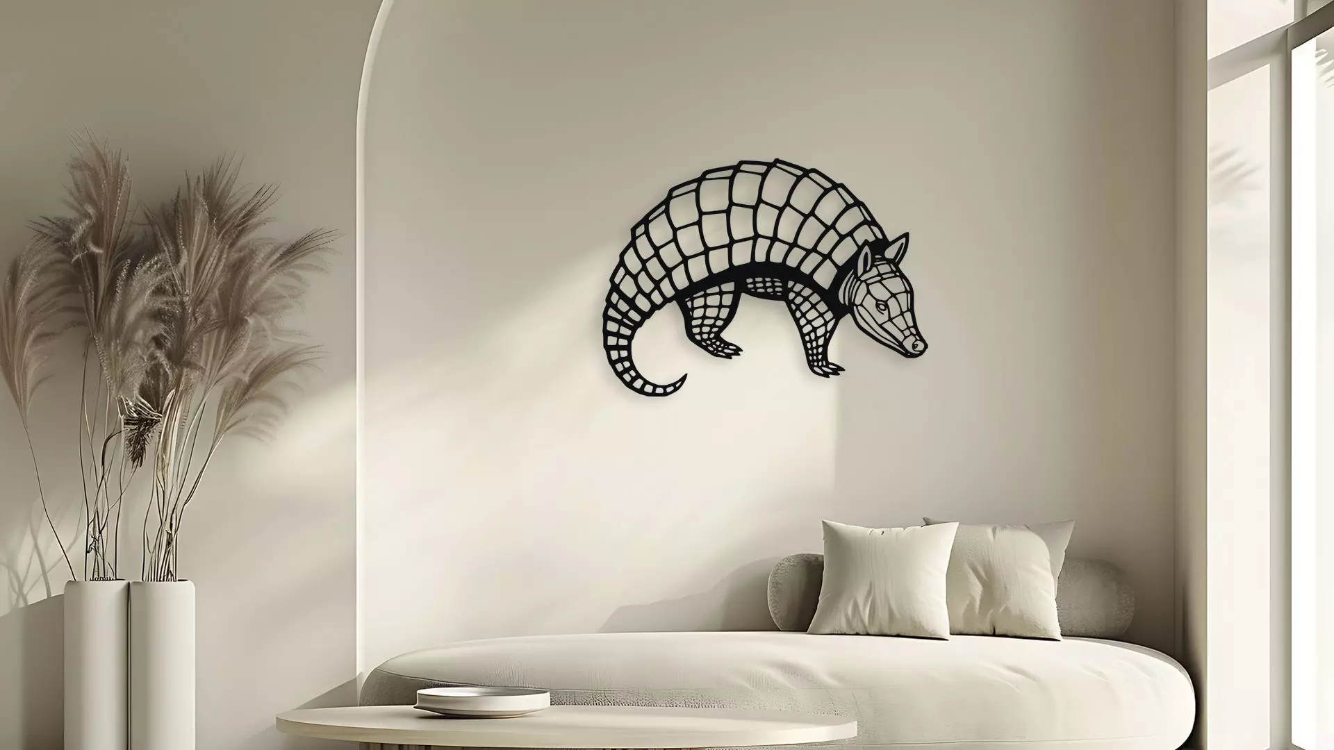 Enhance your living space with this stunning geometric Armadillo wall art. This unique and stylish piece features a detailed design of an armadillo, perfect for adding a touch of wildlife and modern aesthetics to any room. Ideal for home decor, office spaces, or as a special gift for animal lovers. The clean lines and intricate pattern make it a versatile piece for various decoration styles. This file is perfect for 3d printing, laser engraving and cutting, wood carving, vinyl cutting, t-shirts, clothing, stickers, cardbox... You will receive these design in 10 file formats: STL, STEP, OBJ, AMF, SVG, DXF, AI, PDF, PNG, EPS
