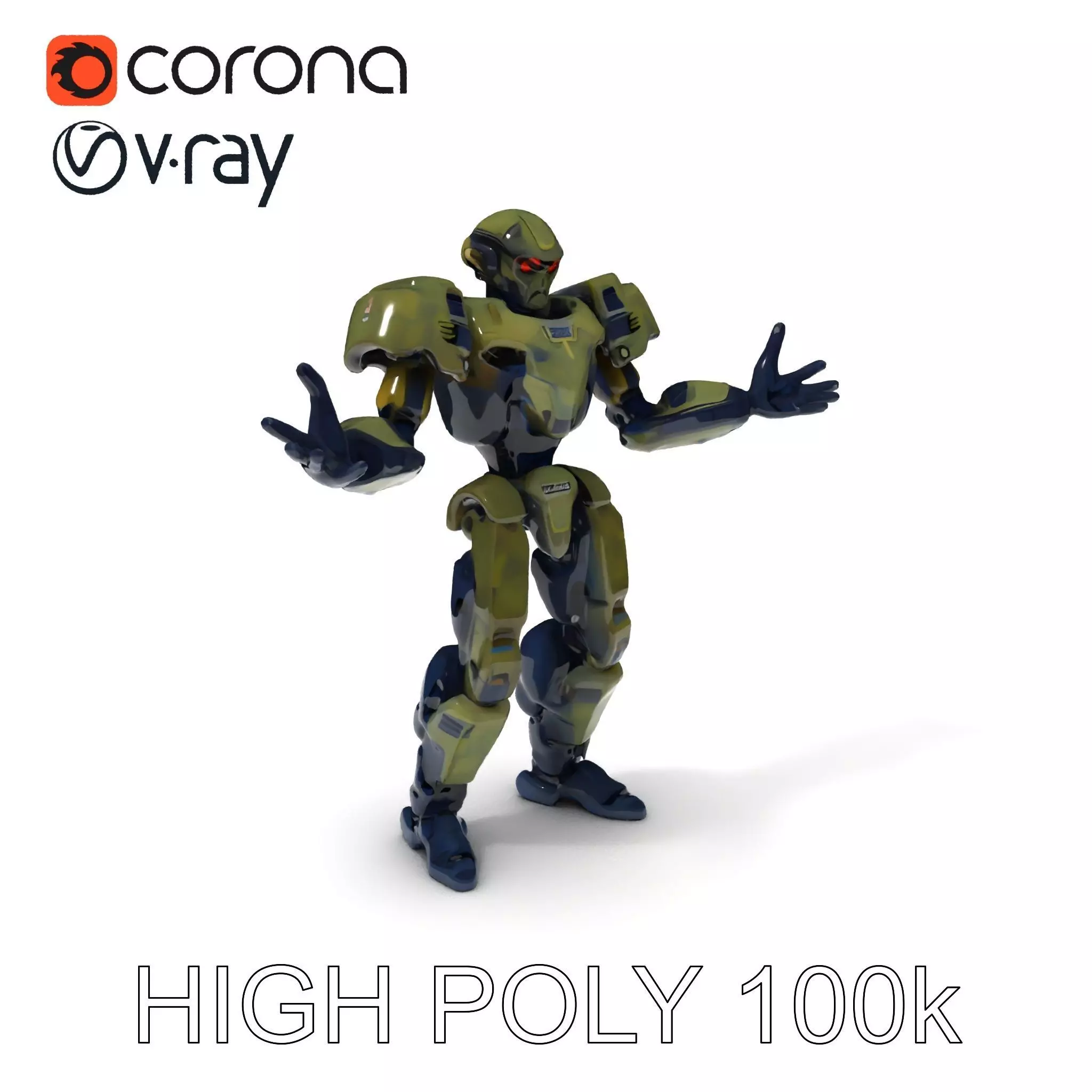 Armored Combat Android with Red Eyes and Military Design Low-poly 3D model