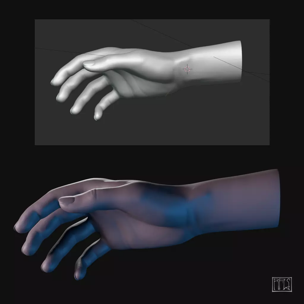 Artist's mannequin - an aid to lighting and composition for traditional and digital artists - Hand, relaxed