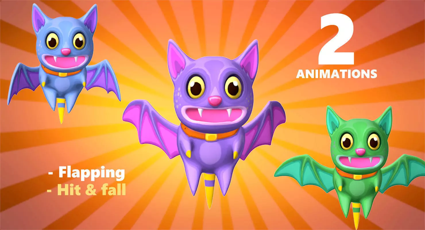 Anime styled cartoon bat cat hybrid character for games and animations. The model is game ready and compatible with game engines.