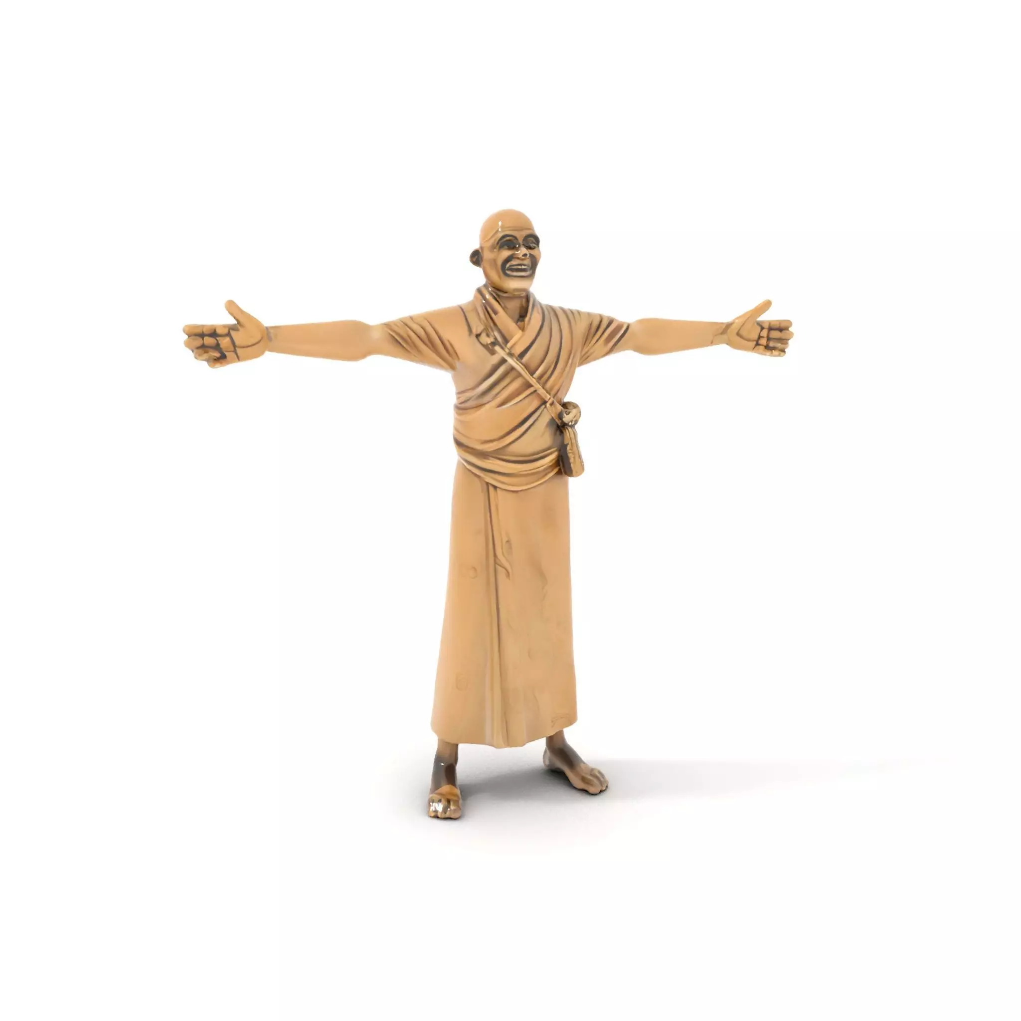 This 3D model is a beautifully detailed bronze monk statue, capturing the serene and open-hearted pose of the figure. Each model has 3 levels of detail: low-poly, middle-poly, and high-poly, which allows for the use of this model in production rendering, game engines, and interactive presentations, providing a choice of detail based on the LOD System principle. Ideal for use in religious or cultural visualizations, historical recreations, or as a unique decorative element in digital environments. The model's textures are PBR, Diffuse, NormalMap, and reflection/roughness/metallic, suitable for any modern rendering engine. All models are accurately unwrapped with no overlapping UVs. All textures are 4096*4096 in size. Please like and leave a comment for the model if you liked it.