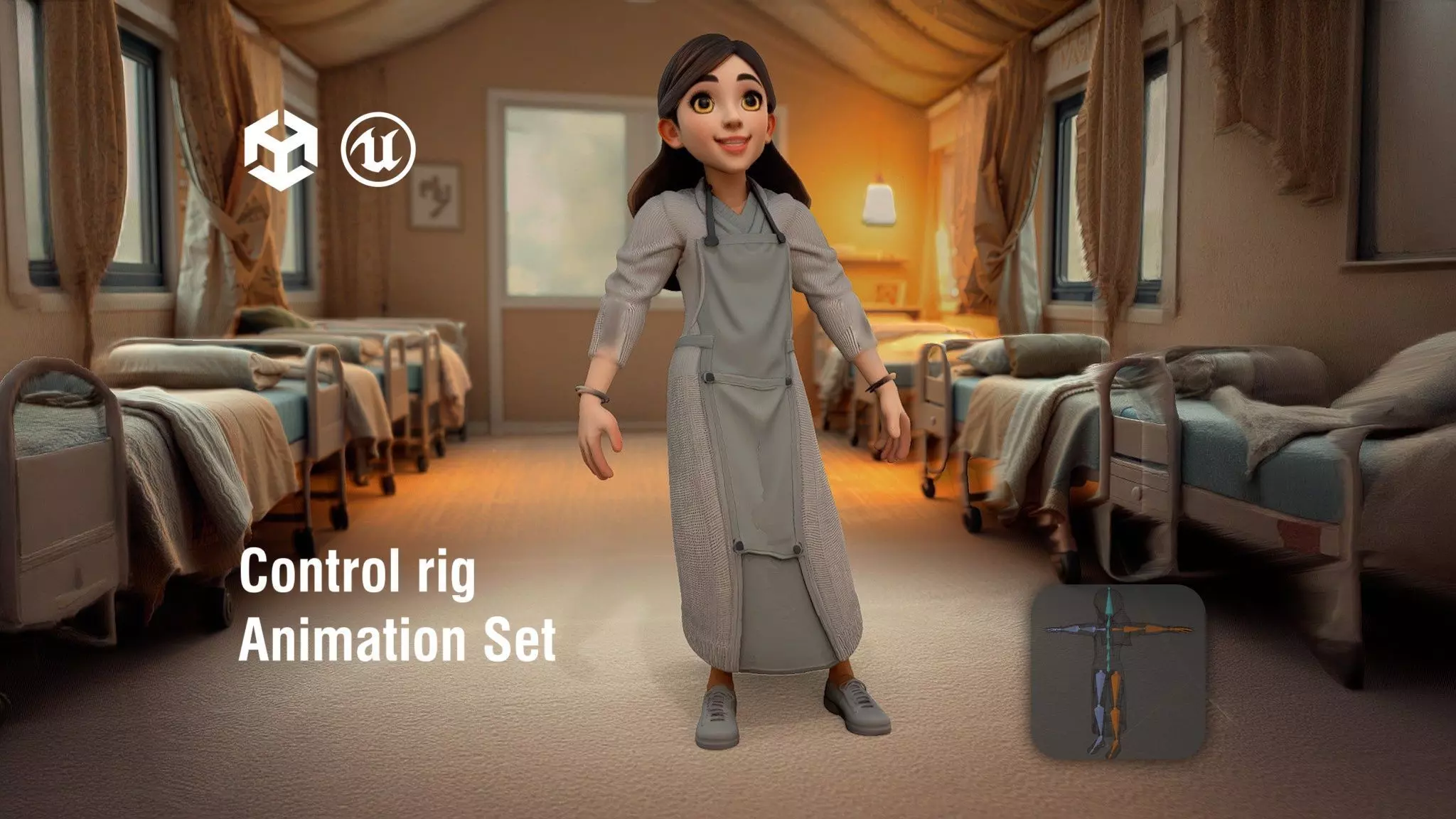 This model represents a caregiver character designed for a cozy clinic setting. Each model has 3 levels of detail with QUAD polygons: