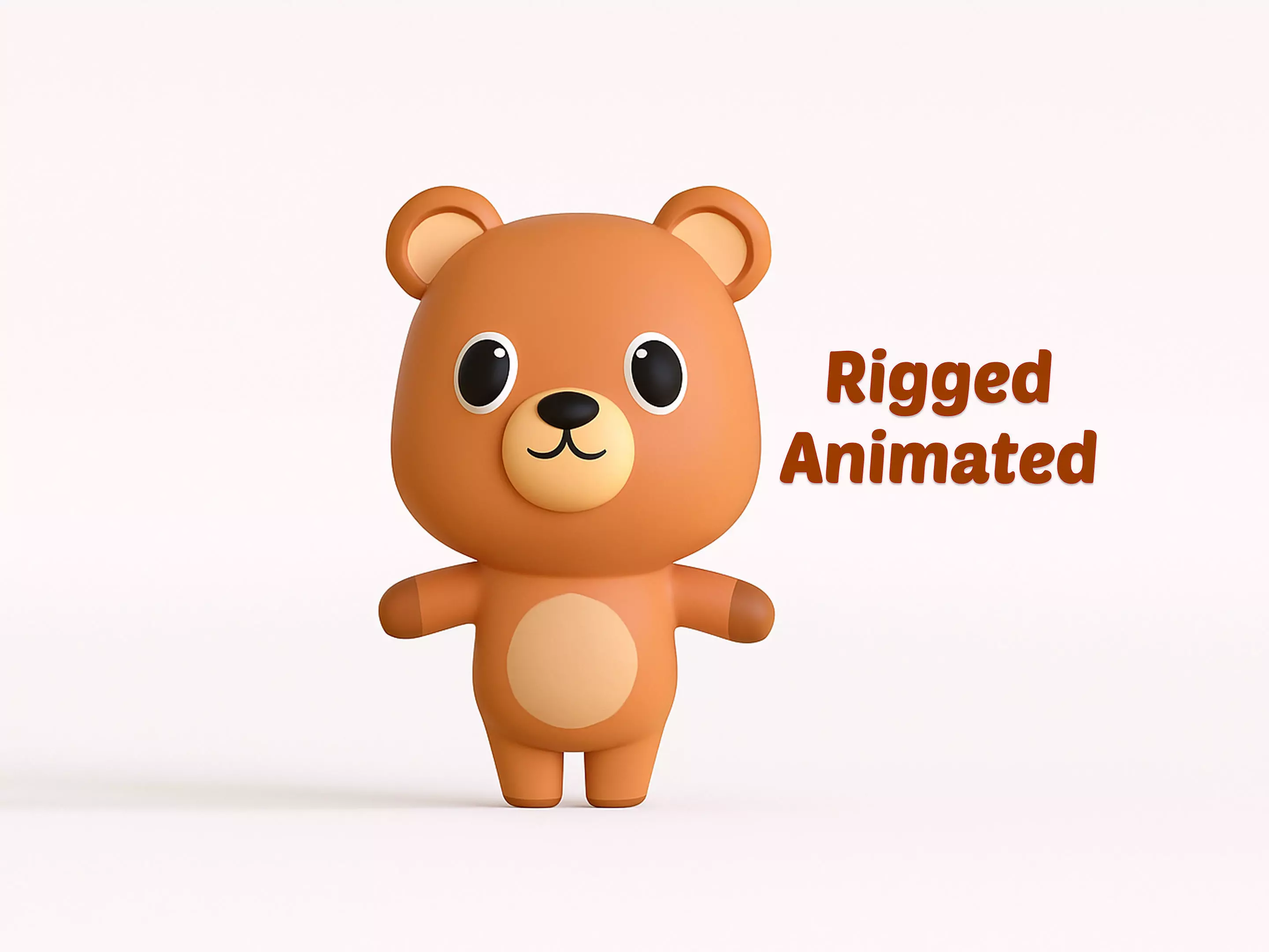 Cartoon Bear - Chubby Animal Rigged 3d model low poly