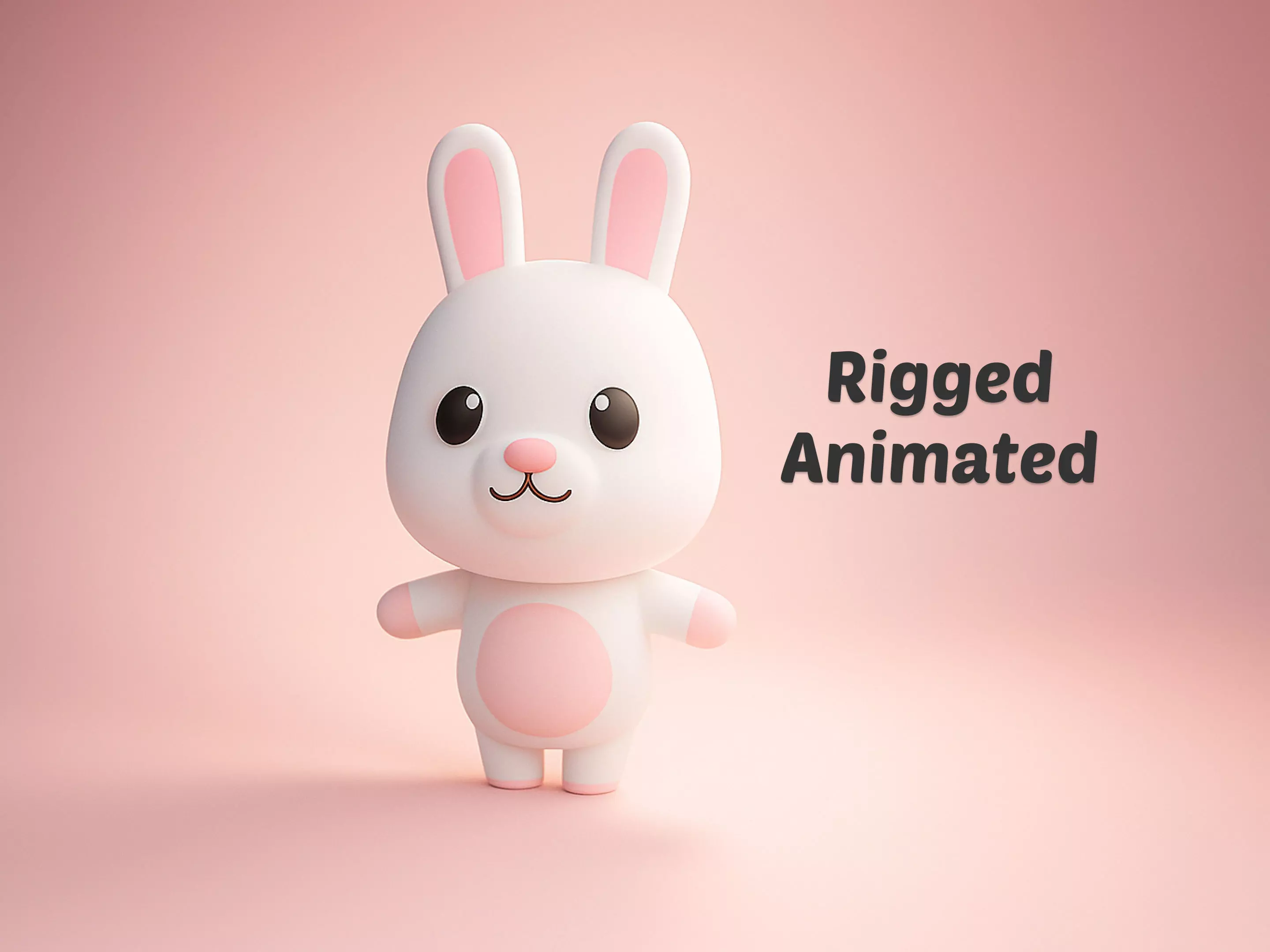 Cartoon Bunny-Chubby Animal Rigged 3d model low poly