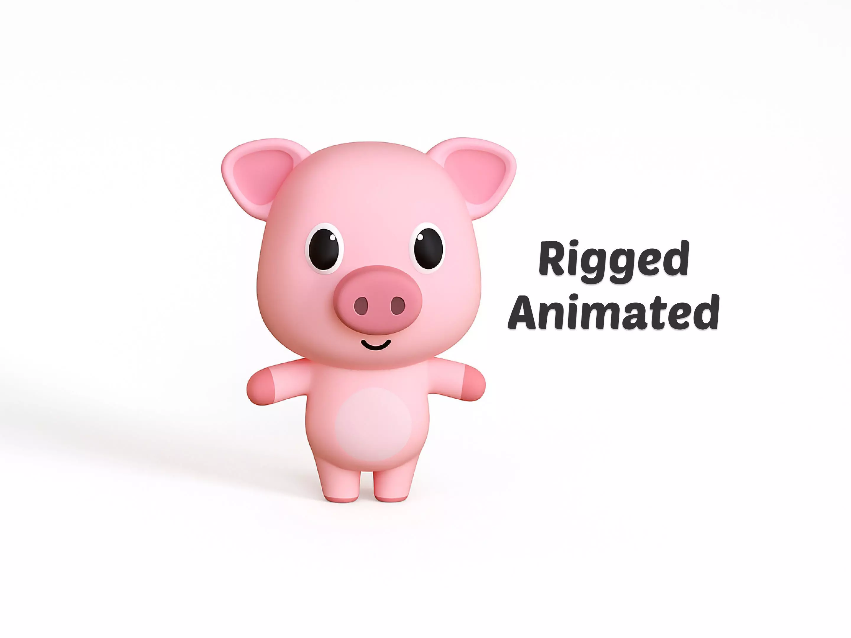 Cartoon Pig - Chubby Animal Rigged 3d model low poly