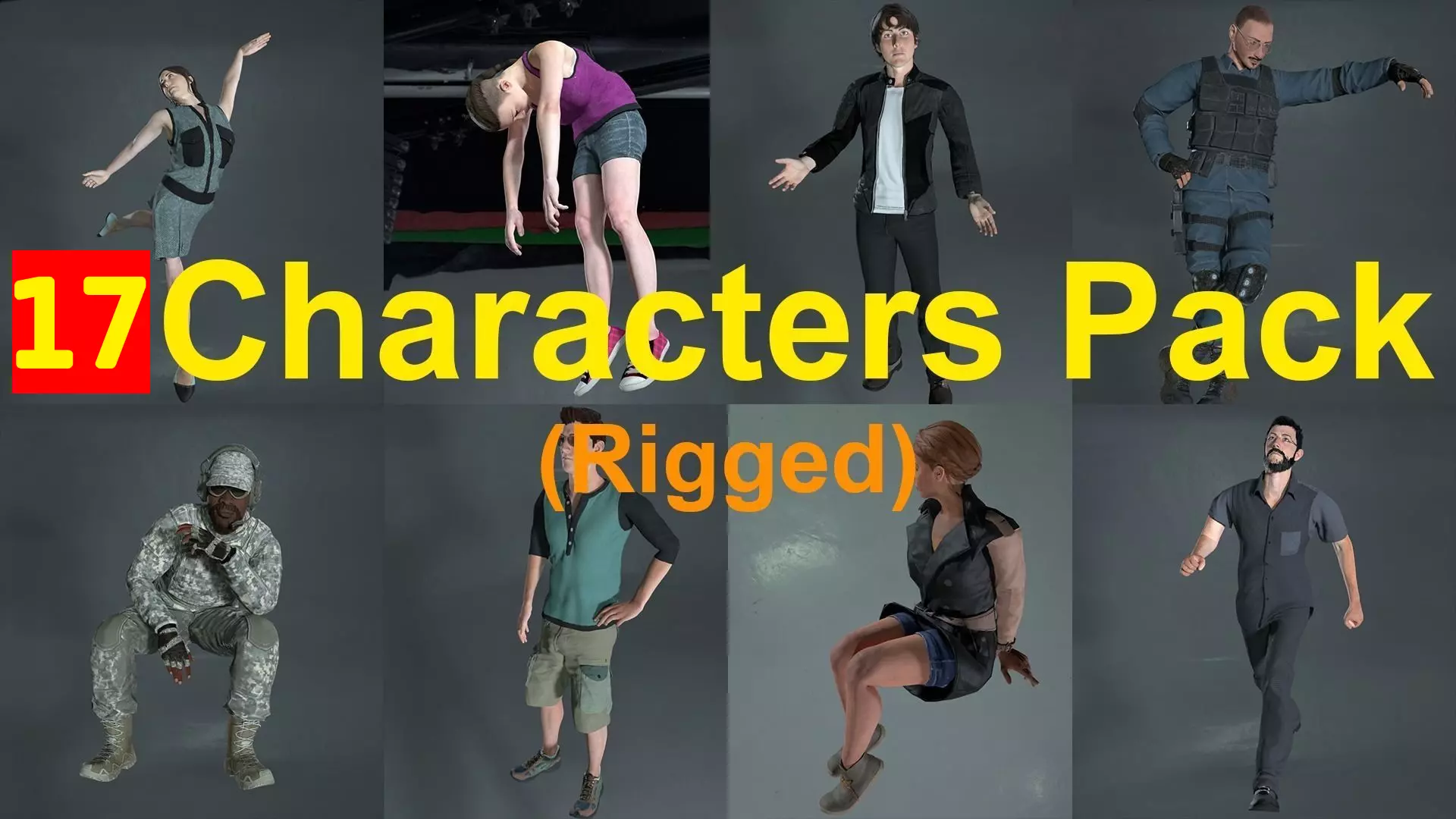 This pack includes:5 rigged male characters5 rigged female characters3 rigged police character2 rigged military characters1 rigged zombie character1 rigged Fire fighter character