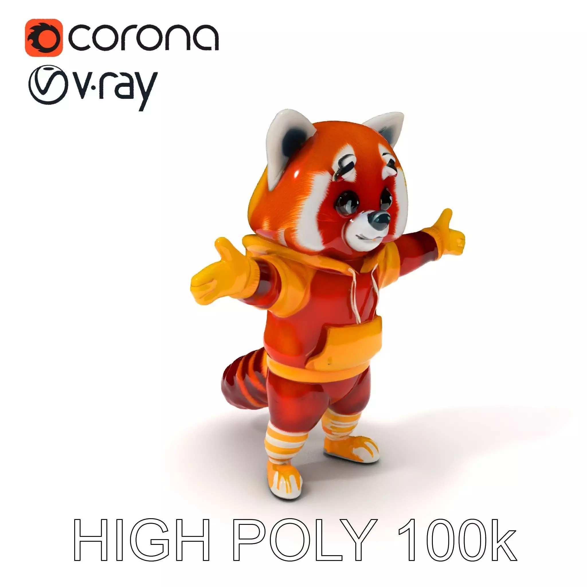 Charming Red Panda Character in Vibrant Hoodie for Game Anima... Low-poly 3D model