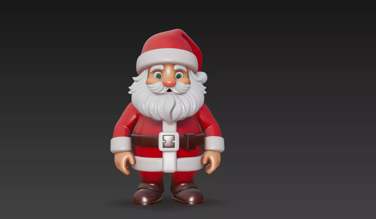 This is a high-quality stylized chibi Santa Claus 3D character, designed with a friendly, cheerful holiday look.The character features round chibi proportions, expressive eyes, a fluffy white beard, classic red Santa outfit, belt, boots, and a warm, welcoming pose.