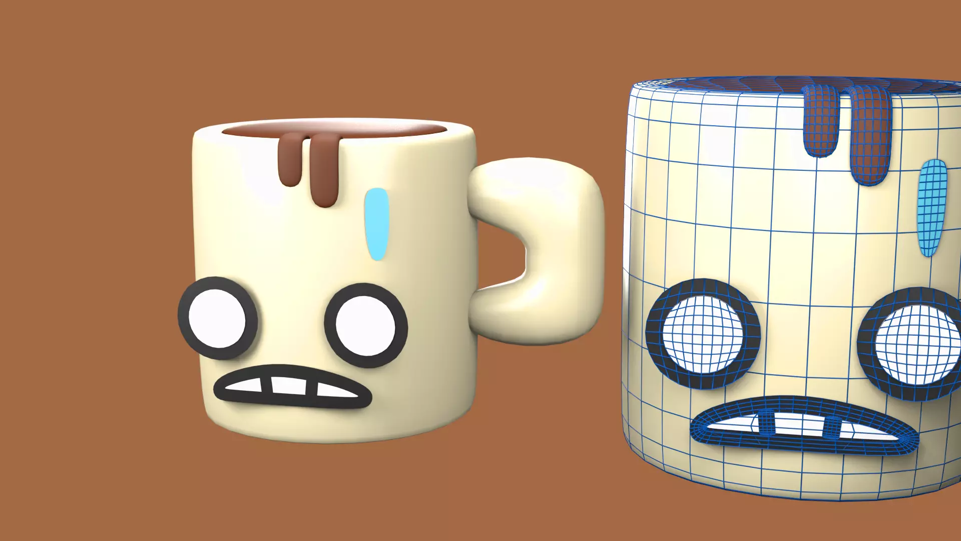 The 3D model of the Coffee character from the Boomerang Fu game.
