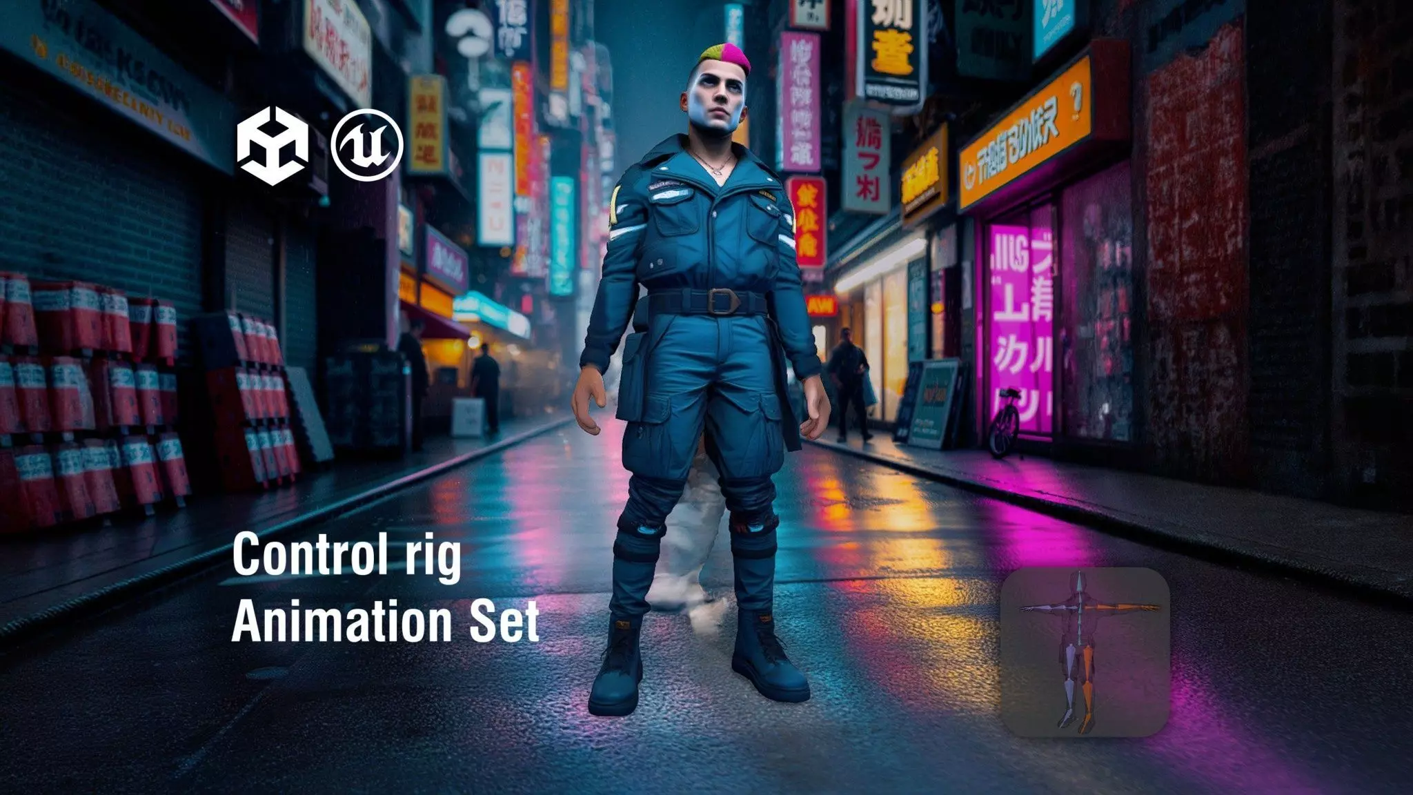 This model features a striking cyberpunk street samurai character, designed with intricate details and vibrant colors. Each model has 3 levels of detail with QUAD polygons: