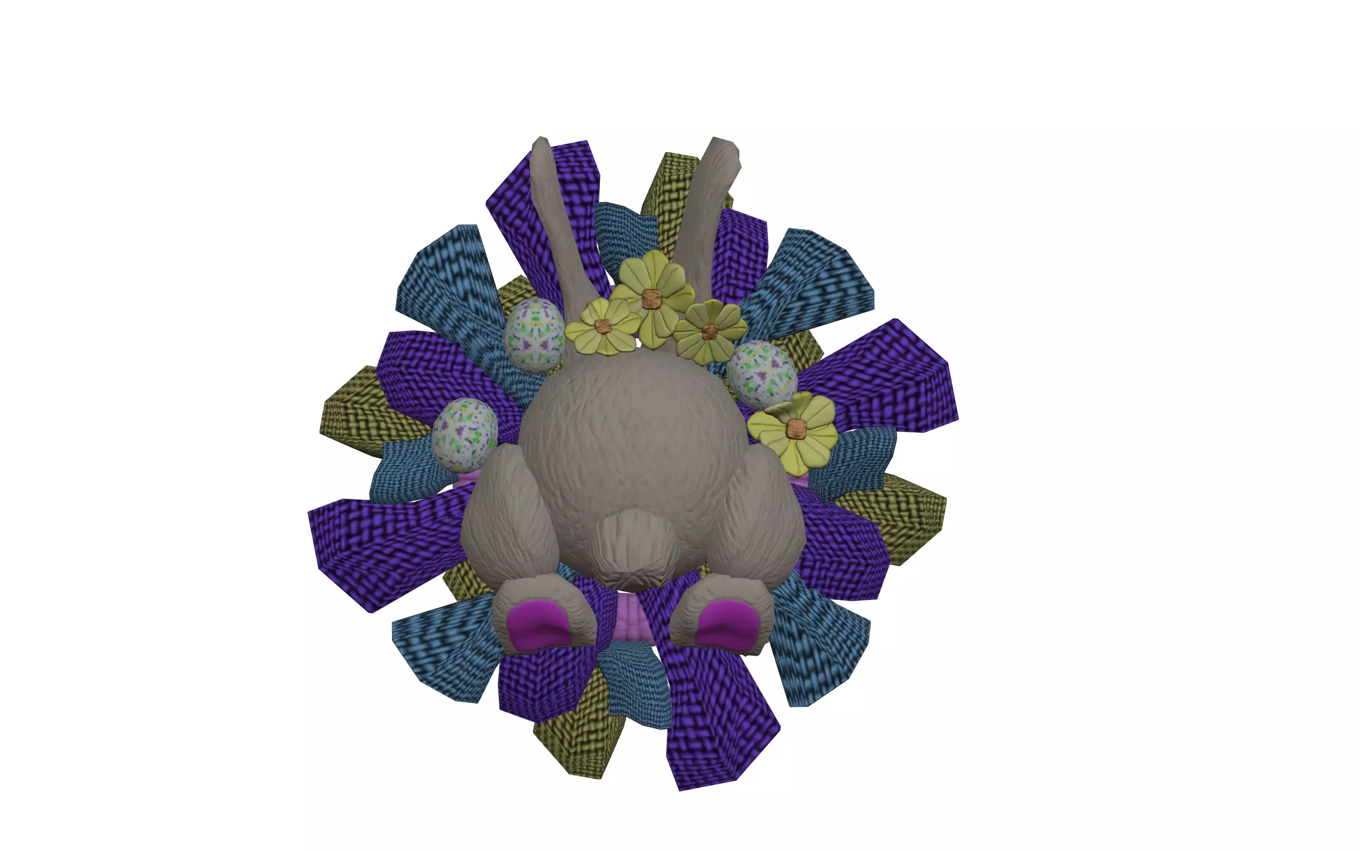 Creatively design your gaming world with fun bunny wreaths made of ribbons, eggs and a bunny!
