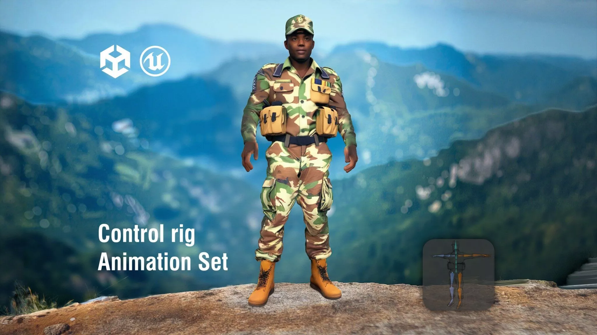 This model features a full body Ethiopian soldier in a rugged camouflage uniform, designed for mountainous environments. Each model has 3 levels of detail with QUAD polygons: