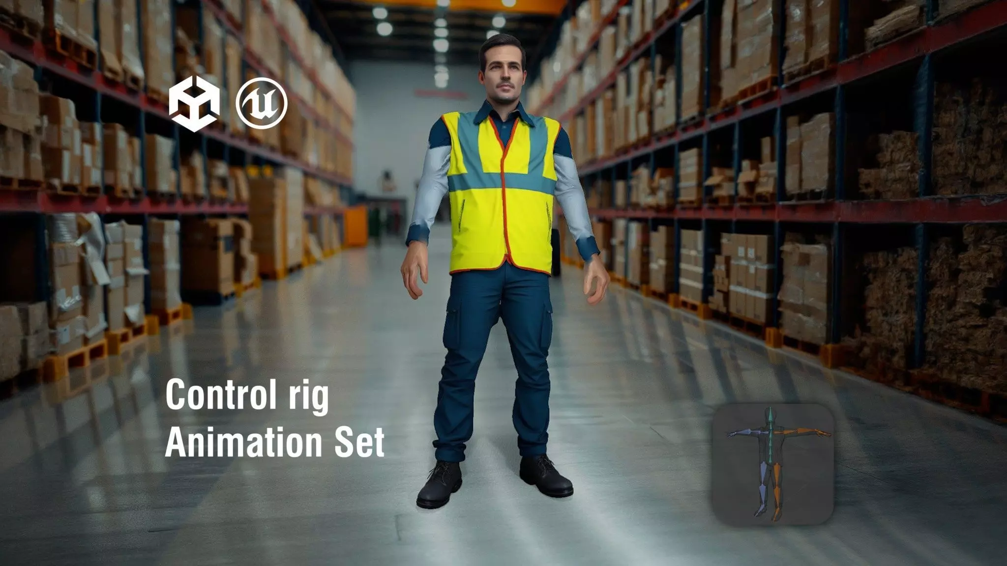 This model depicts a forklift operator in a neon yellow safety vest, designed for realistic industrial environments. Each model has 3 levels of detail with QUAD polygons: