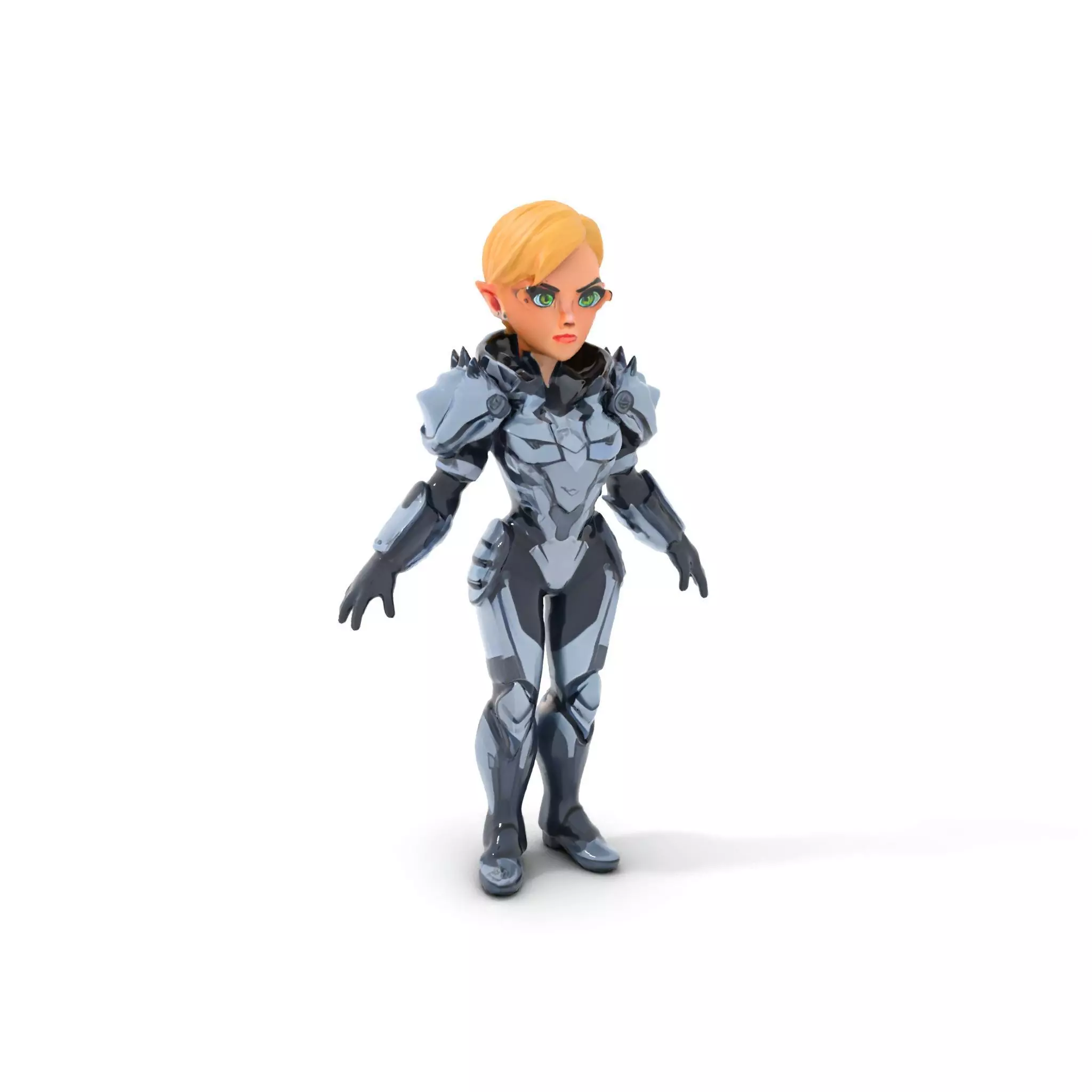 Futuristic Elf Warrior Character Model Rigged and Animated Low-poly 3D model