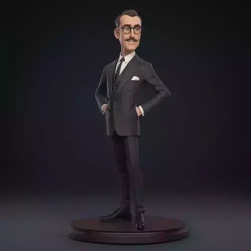 This premium 3D collectible figurine features an original character design inspired by a classic gentleman actor archetype. Captured in a confident and elegant stance with hands tucked into his blazer pockets, the character embodies mid-century cinematic sophistication through a smooth, high-fidelity sculpt and polished cartoon realism proportions.
