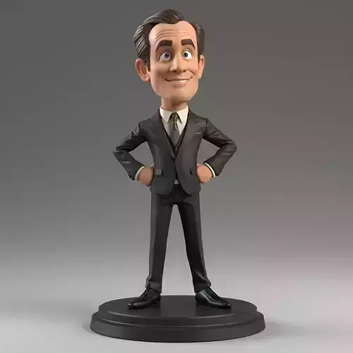 Gentleman Actor Archetype 3D FigurineDescriptionThis high-quality 3D cartoon figurine represents an original character design inspired by a classic gentleman actor archetype. The character is sculpted with smooth, rounded shapes and a cartoon realism aesthetic, standing in a confident bipedal pose with his hands on his hips.