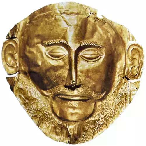 The Golden Mask of Agamemnon stands as one of antiquity’s most iconic symbols of power, mystery, and mortality. Crafted from hammered gold with remarkable precision, the mask portrays a serene male face with closed eyes, a finely shaped nose, and a stylized beard that speaks of regal dignity. Its smooth, reflective surface captures light with divine warmth, evoking both reverence and awe. Despite minor imperfections and ancient fractures, the mask remains a masterpiece of craftsmanship, embodying the artistic and spiritual depth of early civilizations.
