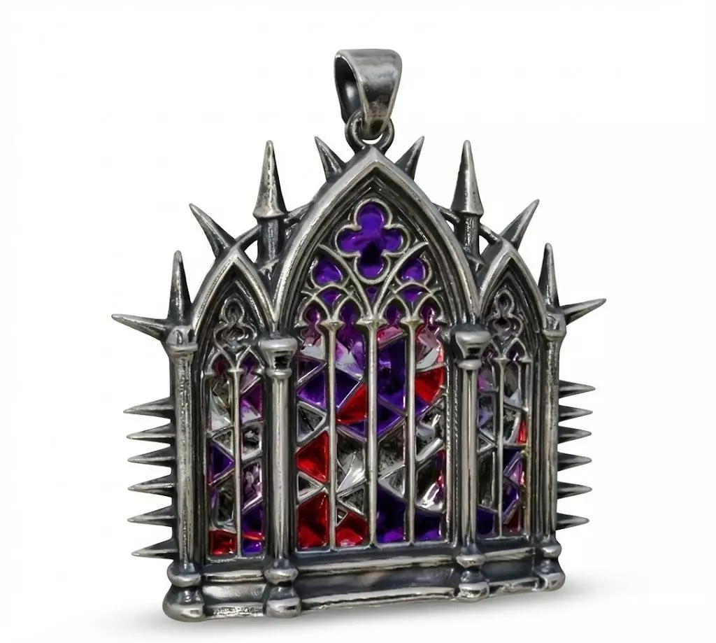 The Overall Concept This piece is a wearable miniature of a dark fantasy cathedral. It captures the grandeur of Gothic architecture, condensing a stained-glass window into a jewelry asset. It works perfectly as a ring face, a pendant, or a sacred talisman for a cleric or vampire character.