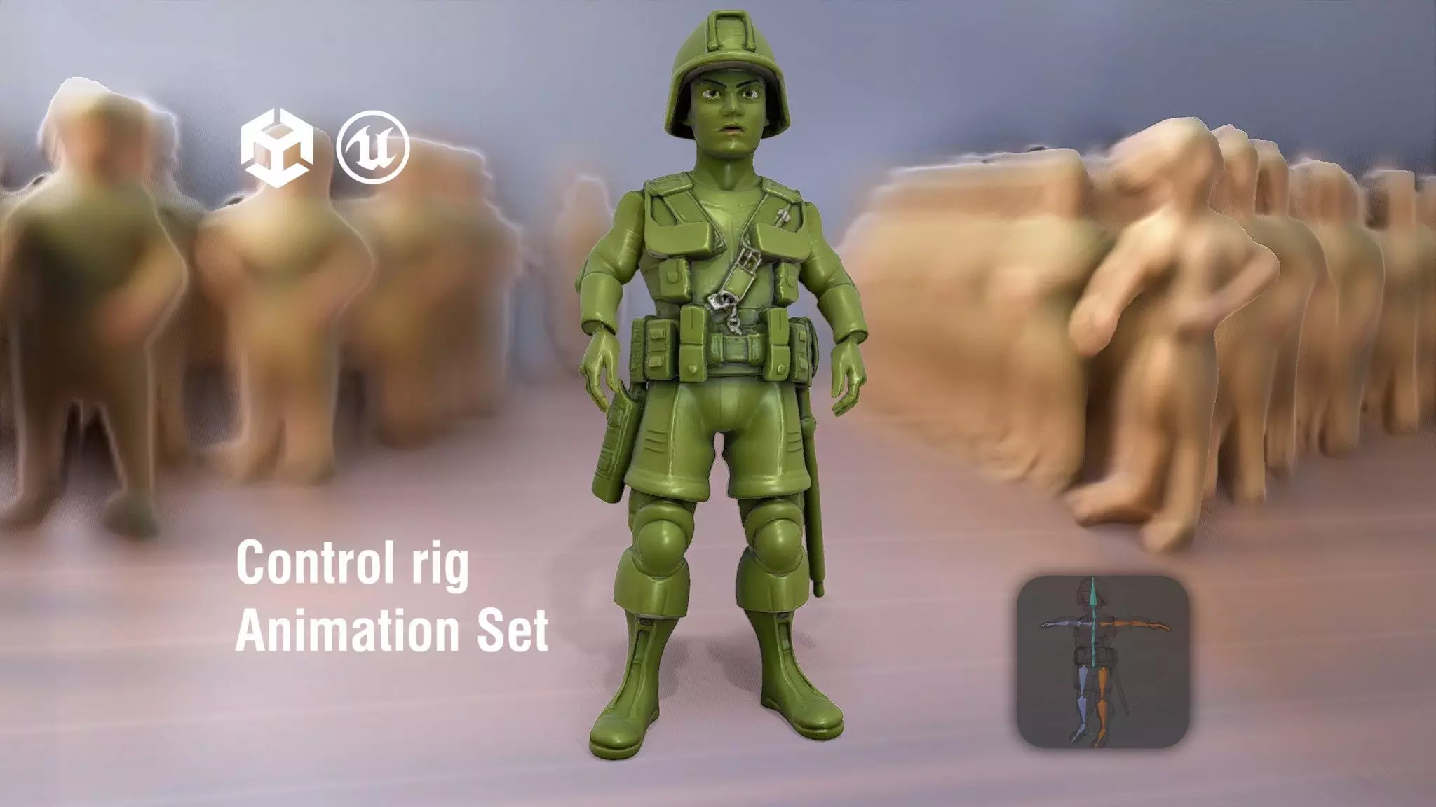 This Green Soldier Action Figure model pack is a versatile representation of a classic military toy. Detailed with realistic features, it is ideal for animation, rendering, or game development projects. Each model has 3 levels of detail: low-poly (1000 triangles for mobile), middle-poly (10,000 triangles for environment), and high-poly (100,000 triangles), which allows for the use of this model in production rendering (such as 3ds Max, Maya, Cinema 4D, Blender, V-Ray/Corona/Cycles and all other), game engines (Unity and Unreal compatible), and interactive presentations, providing a choice of detail based on the LOD System principle. Perfect for creating military-themed scenarios or enhancing toy and animation scenes. The model's textures are PBR, Diffuse, NormalMap, and reflection/roughness/metallic, which are suitable for any modern rendering engine. All models accurately unwrapped and have no overlapping UV. All textures are 2048*2048 in size. Please like and leave a comment for the model if you liked it.
