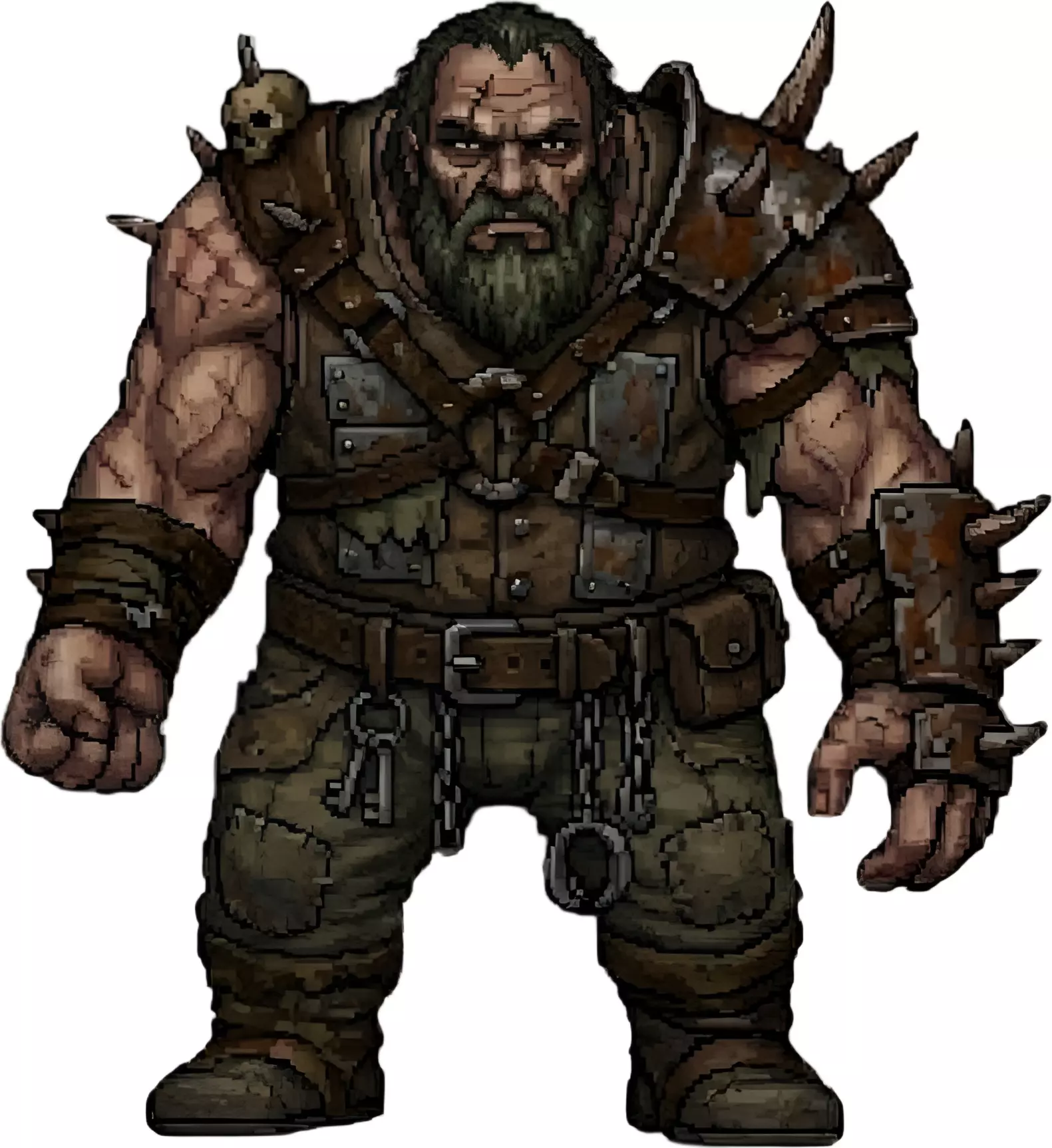 Enhance your wasteland or dark fantasy environments with this Gritty Post-Apocalyptic Brute Warrior, a high-fidelity 3D character asset meticulously designed for AAA game development and immersive VR platforms. This model captures the 2025–2026 trend for Tactile Materiality and Hybrid 2D/3D Illustration, featuring a rugged, weathered design with rusted pieced-together plate armor, heavy chains, and a detailed bearded aesthetic.