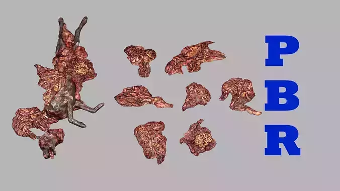 Horror Assets - Dog Corpses Pack Low-poly 3D Model The skeleton model is made specifically for game engines. You can also use it not as a character, but as a prop, for example, as a pile of bones, a human corpse or a separately lying skull. Some parts (bones, ribs, skull) of this model I also use when creating other models. Therefore, I highly recommend this model both for use in making games and for other modelers to create anything using bones.I can also help create additional animations. human organ part of small intestine detail model created from blender and texturing done with Blender,
