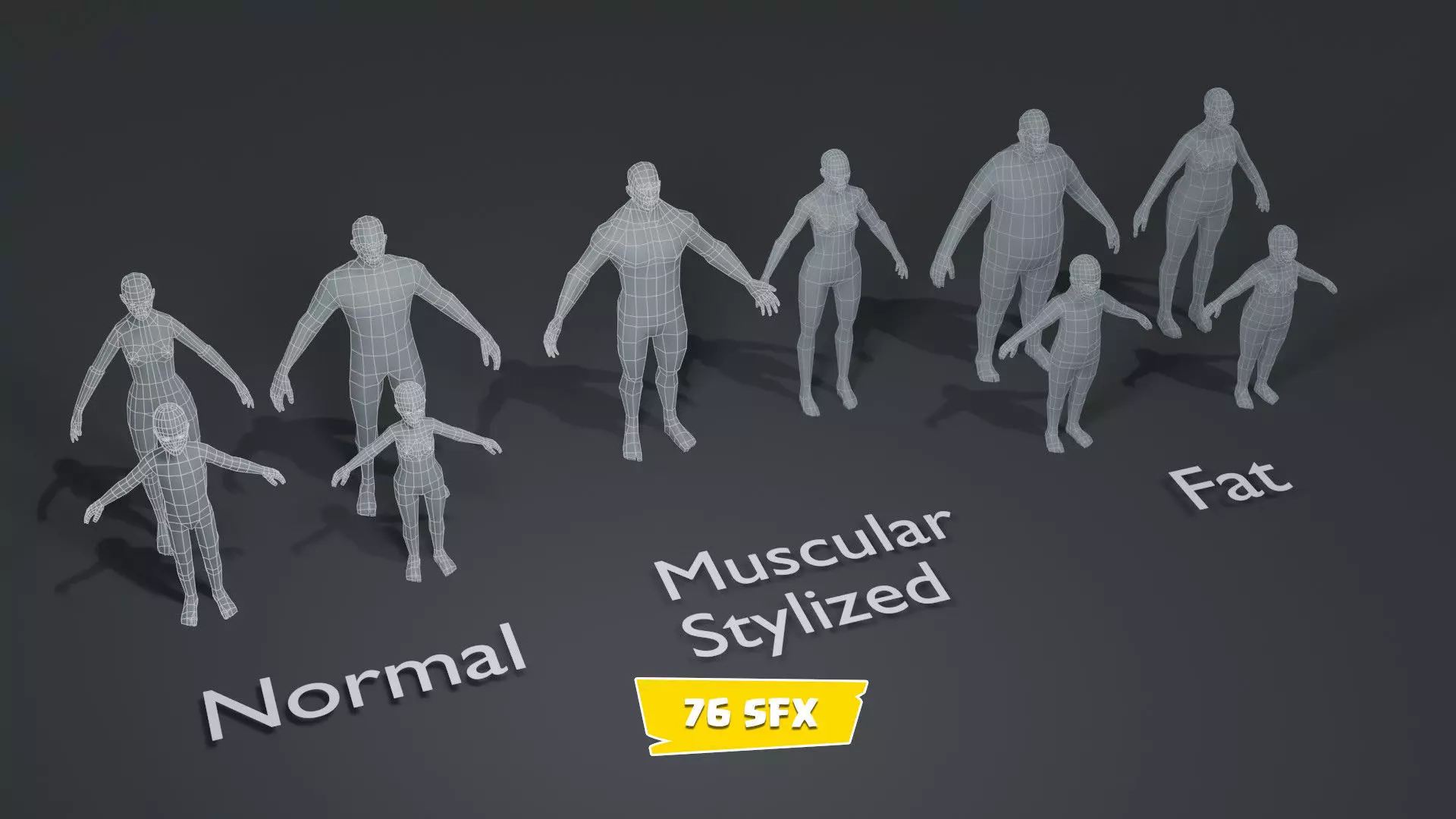 Human Body Base Mesh 10 3D Models Pack – 1000 Polygons + 76 Sound Effects is a complete collection of stylized low-poly base meshes designed for creators, animators, and game developers. This pack includes 10 detailed body base mesh models , each carefully optimized for animation and real-time use: