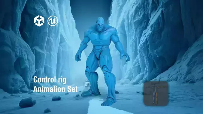 This model represents a massive ice golem, intricately detailed with cracks and frost across its body. Each model has 3 levels of detail with QUAD polygons: