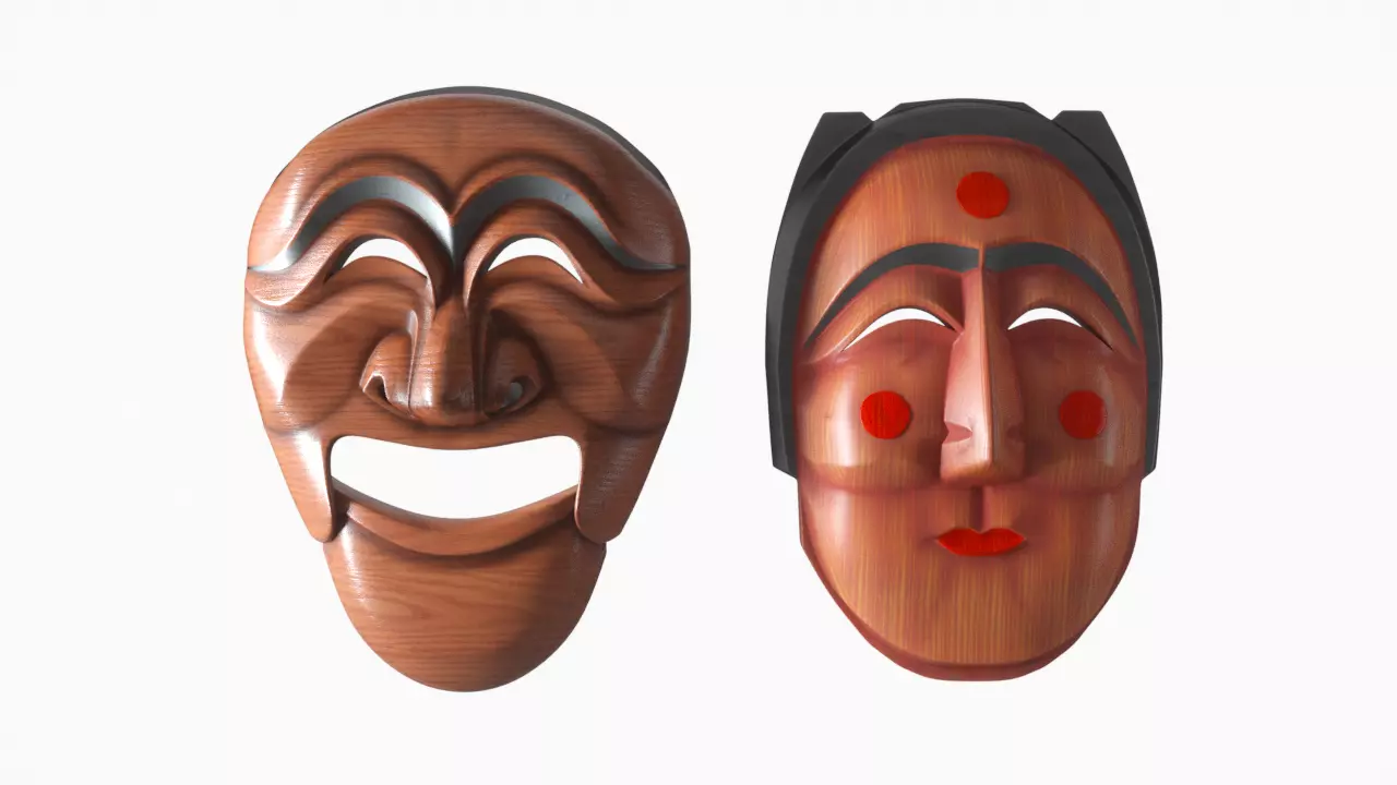 Korean masks have a long tradition with the use in a variety of contexts. Masks of any type are called 'Tal' in Korean, but they are also known by many others names such as gamyeon, gwangdae, chorani, talbak and talbagaji. Korean masks come with black cloth attached to the sides of the mask designed to cover the back of the head and also to simulate black hair.