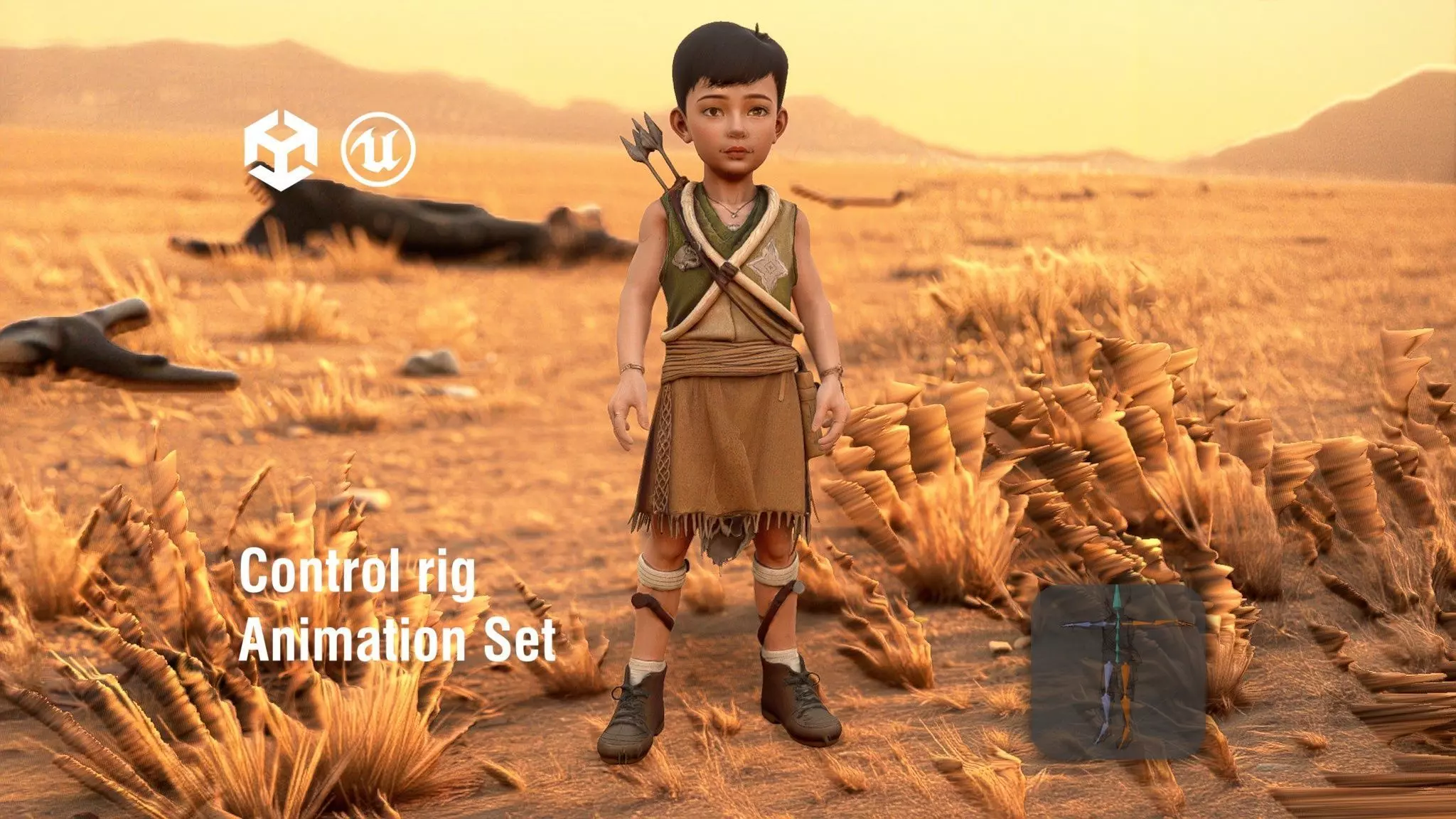 Includes multiple idle, walk, run, and jump animations as FBX files for Unity and Unreal Engine, easy to apply to this character. It's full compatible with Mixamo RIG.This character model comes in 3 levels of detail: low-poly for mobile games, mid-poly for standard games, and high-poly for cinematics. The model is fully rigged and ready for animation. It includes PBR textures (4096x4096), including diffuse, normal maps, and metallic/roughness maps. The character is provided in T-pose and can be easily imported into any modern game engine or 3D software. Perfect for games, animations, or virtual reality applications. Please like and comment if you find this model useful!A lanky adolescent hunter-in-training with slightly oversized hands and feet, narrow shoulders, and a light, springy build; sun-browned skin with a few fresh scratches, bright focused eyes, and short shaggy hair tied with a simple cord; wearing a thin fur vest over a rough linen-like plant-fiber shirt, a patched hide skirted tunic, wrapped calves, and worn moccasins with dust-caked seams; a bundle of small throwing spears strapped diagonally across the back, a woven sling coiled and clipped to the belt, and a stone ammo pouch attached to the hip, with a tiny charm necklace as a coming-of-age token. In an open steppe edge with dry grass, scattered driftwood, and low warm sunset light with long shadows, no people nearby; “Full-body, centered, fully visible in frame; standing upright in a T-pose with arms extended straight out to the sides; palms facing the camera (open palms); hands empty; match the provided OpenPose reference; PBR-friendly materials.”.