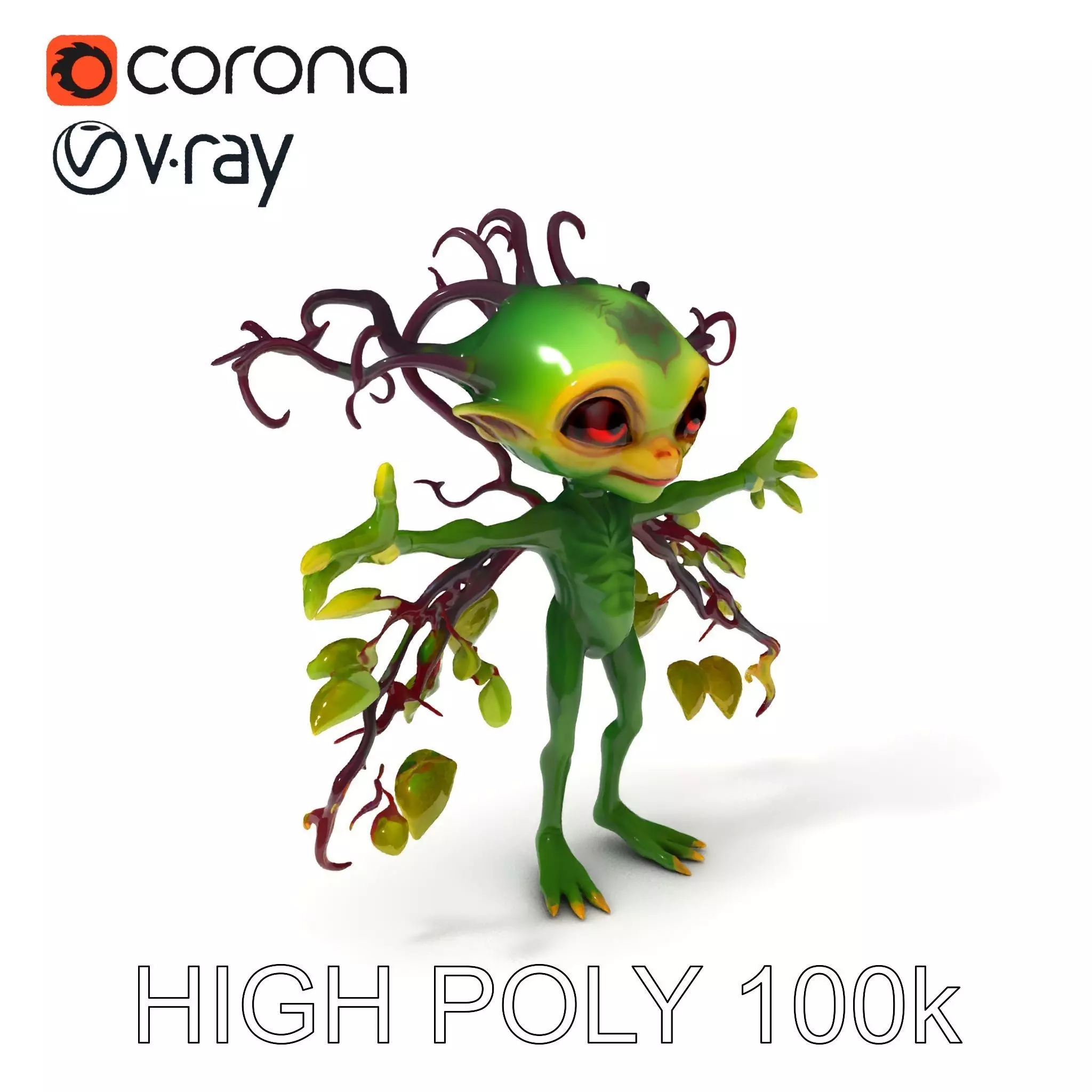 Leafy Sprite Creature with Twisting Vines and Large Eyes D Model Low-poly 3D model