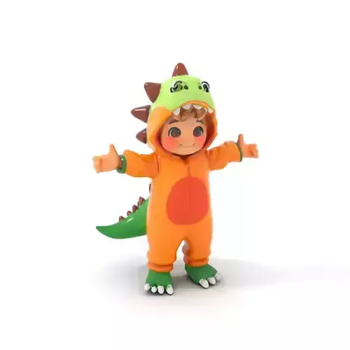 Little Dino Kid Character Rigged and Animated Low-poly 3D model