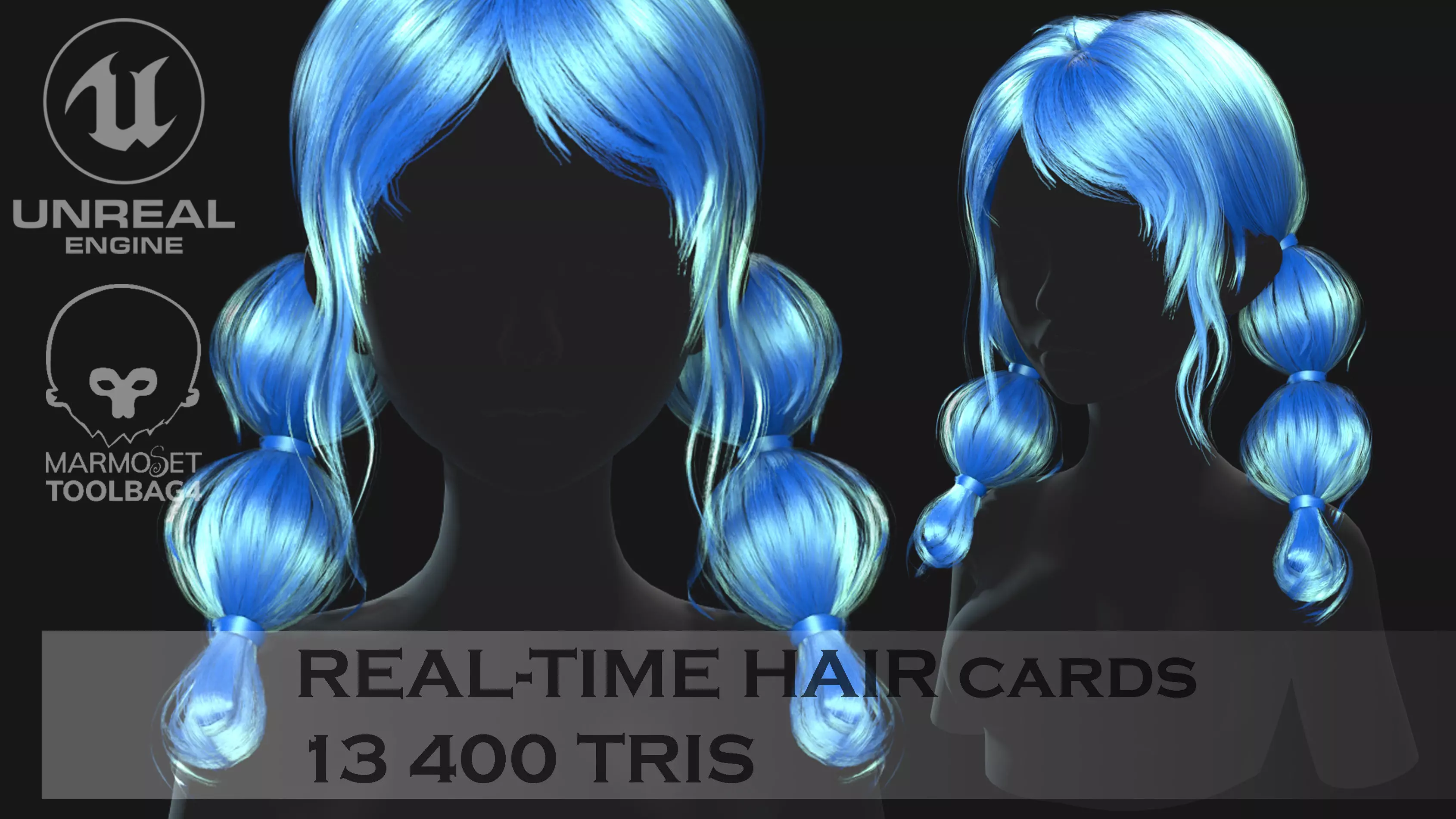 Low poly cards Game-ready hairstyle with tails Low-poly 3D model