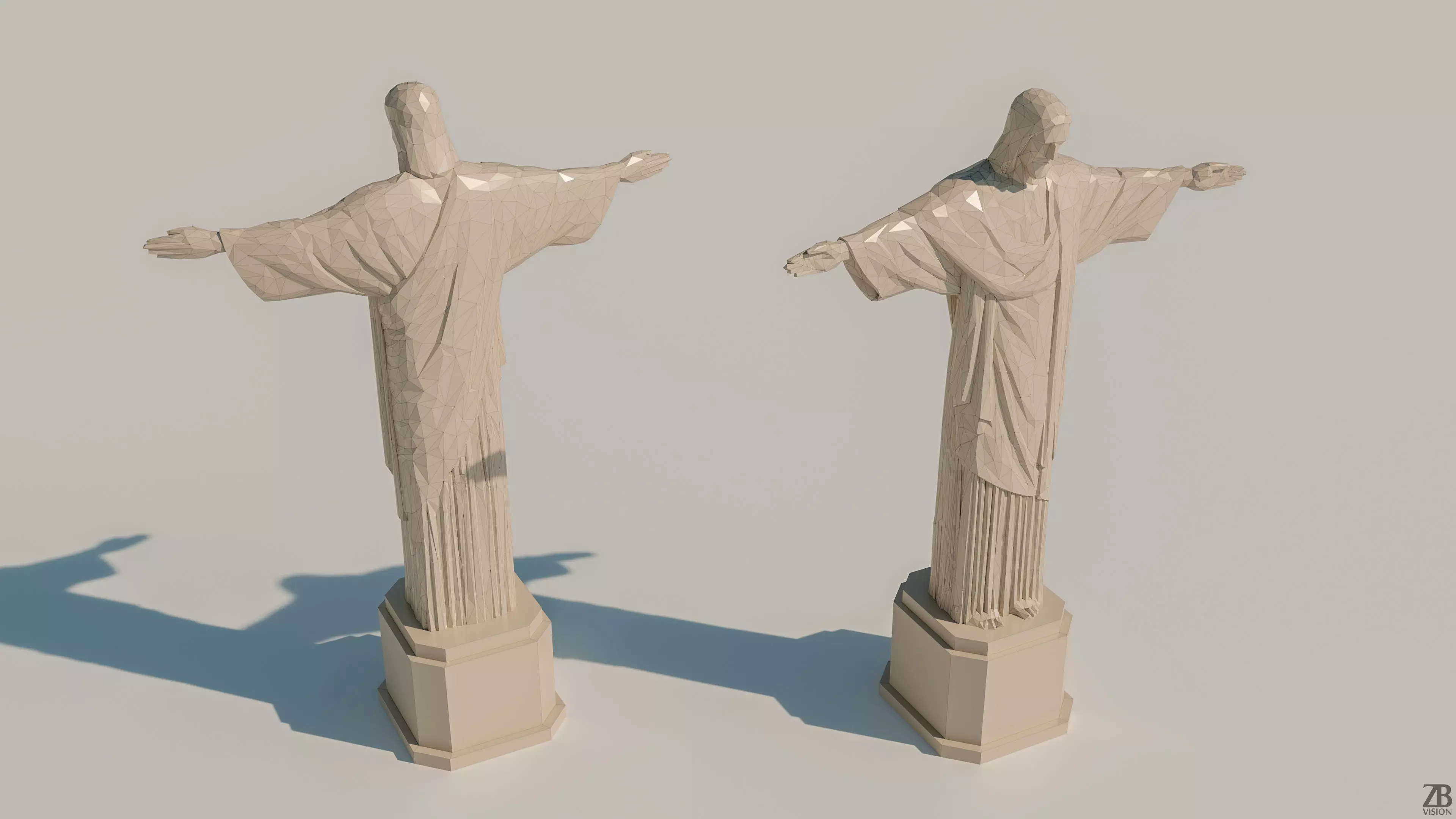 This is a low-poly 3d model of a famous statue from Brazil, Christ the Redeemer The low-poly statue was modeled and prepared for low-poly style renderings, landmark representation, and general CG visualization. The 3d Christ statue is ready to be inserted into your scene out of the box.