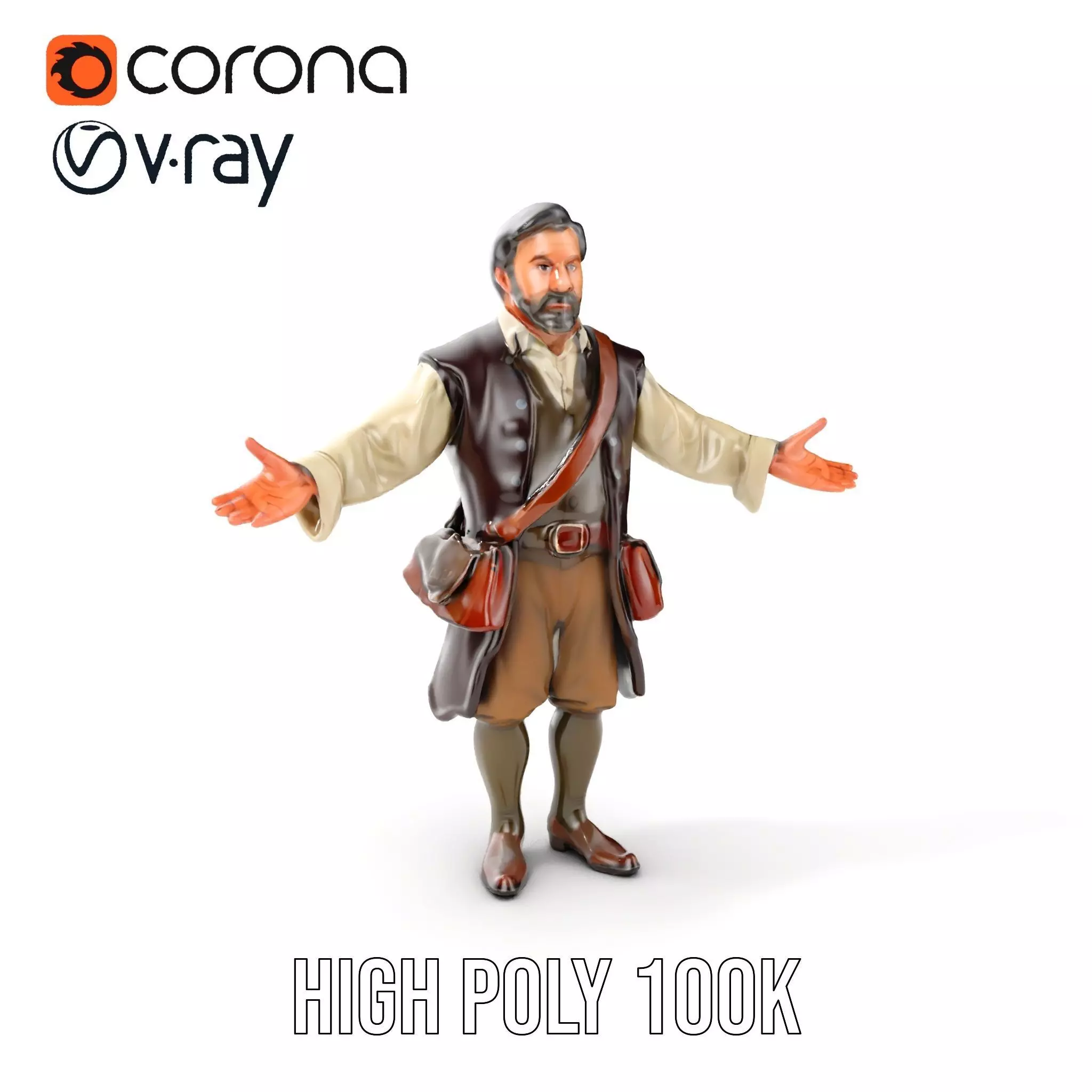 Medieval Merchant Character Model Rigged and Animated Low-poly 3D model