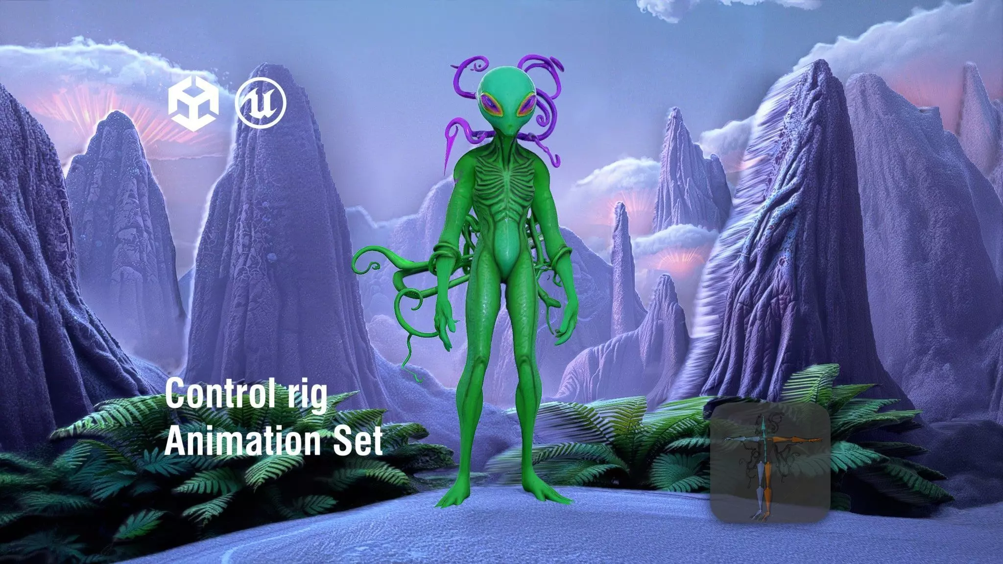 Introducing the Mystic Tentacle Creature model pack, a captivating 3D asset designed for fantasy and sci-fi enthusiasts. This model features an intricate design with vibrant green scales and striking purple tendrils, making it ideal for games, animations, and visual storytelling. Each model has 3 levels of detail: low-poly (1000 triangles for mobile), middle-poly (10,000 triangles for environment), and high-poly (100,000 triangles), which allows for the use of this model in production rendering (such as 3ds Max, Maya, Cinema4D, Blender, Vray/Corona/Cycles and all other), game engines (Unity and Unreal compatible), and interactive presentations, providing a choice of detail based on the LOD System principle. Its PBR textures include Diffuse, NormalMap, and reflection/roughness/metallic, suitable for any modern rendering engine. All textures are 2048x2048 in size, and all models are accurately unwrapped with no overlapping UVs. Perfect for use in game design, film projects, or virtual reality experiences. Please like and leave a comment for the model if you enjoyed it.