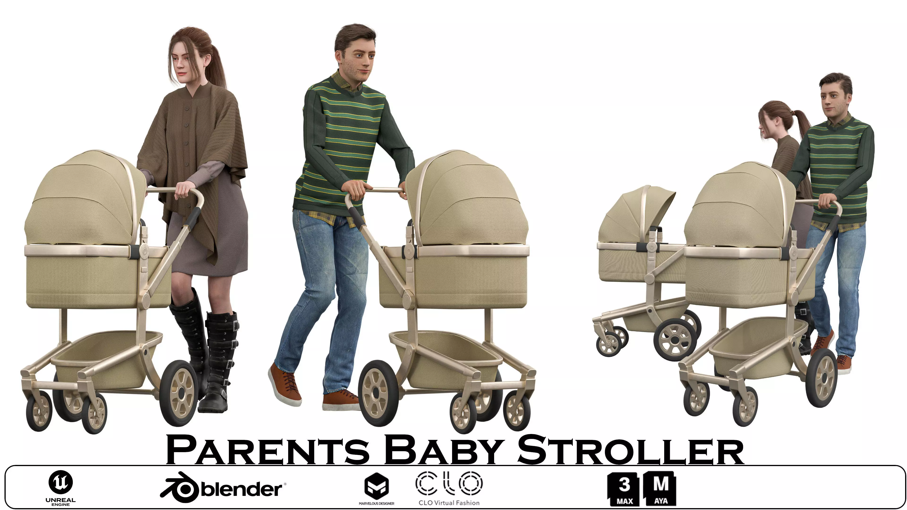 Name: Parents Baby StrollerType: modelFormat: 3Ds Max 2013Export: FBX, OBJRender: VRay (5.x), Corona (6)Polys: 295032Verts: 317557Matclasses: Multimaterial,VRayMtl,CoronaMtlUnits: CentimetersDimension: 213.99 x 158.72 x 183.83Date: 2025.10.20