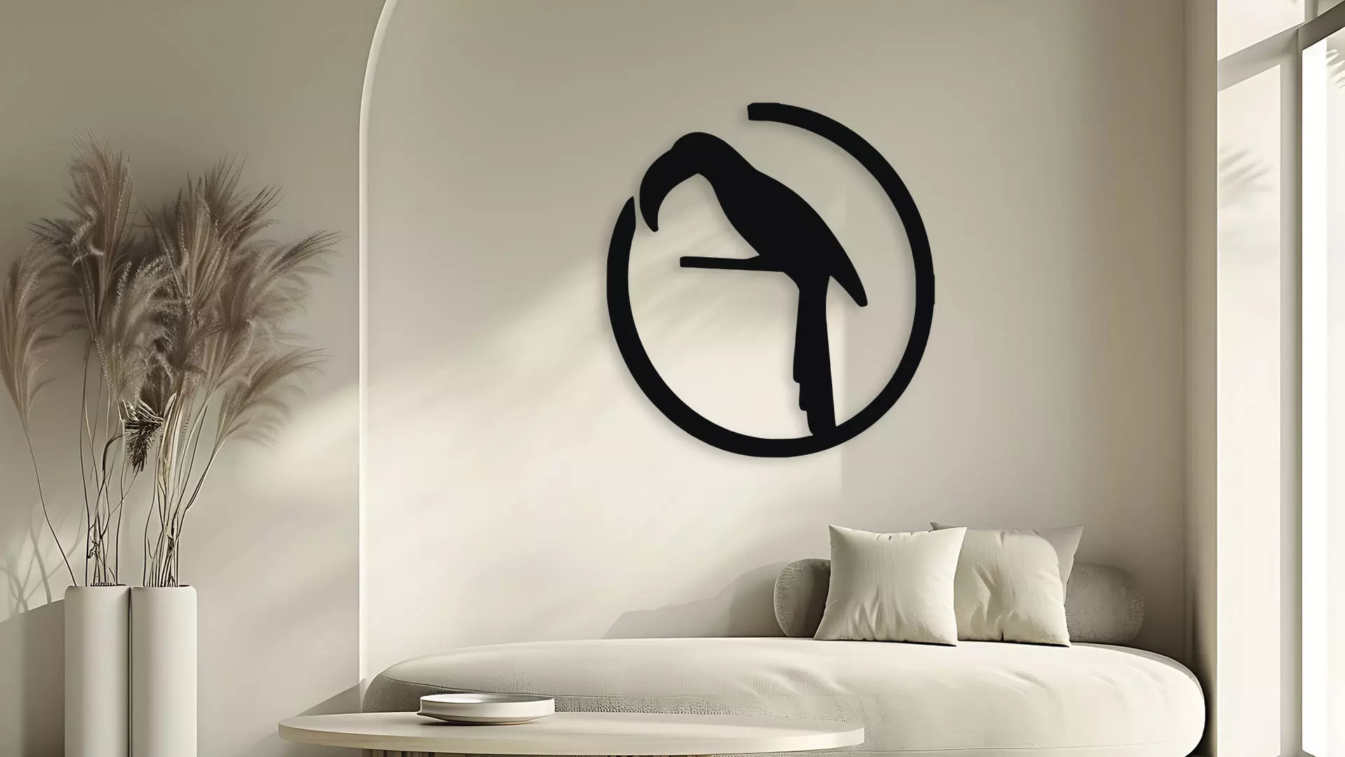 Enhance your space with this stunning Parrot Silhouette Wall Art. This digital design features a minimalist and elegant silhouette of a tropical bird, possibly a parrot or toucan, resting on a perch inside a modern, broken circle frame. It's the perfect digital file for creating a unique piece of home decor. Ideal for living rooms, bedrooms, offices, or even a child's nursery, this design adds a touch of nature and sophistication. The clean lines make it suitable for a variety of manufacturing techniques. This file is perfect for 3d printing, laser engraving and cutting, wood carving, vinyl cutting, t-shirts, clothing, stickers, cardbox... You will receive these design in 10 file formats: STL, STEP, OBJ, AMF, SVG, DXF, AI, PDF, PNG, EPS