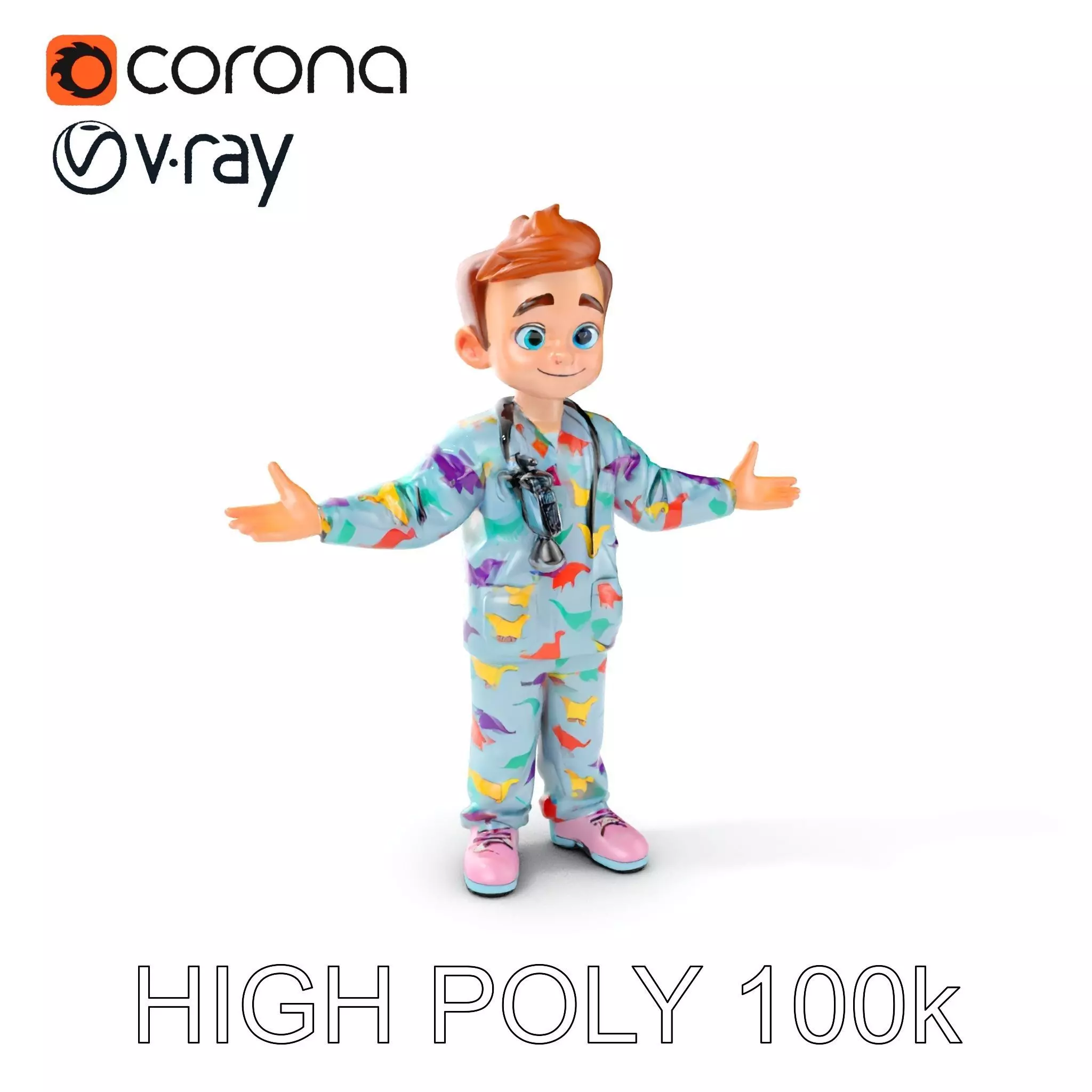 Pediatric Dino Doctor Character Model with Colorful Scrubs Low-poly 3D model