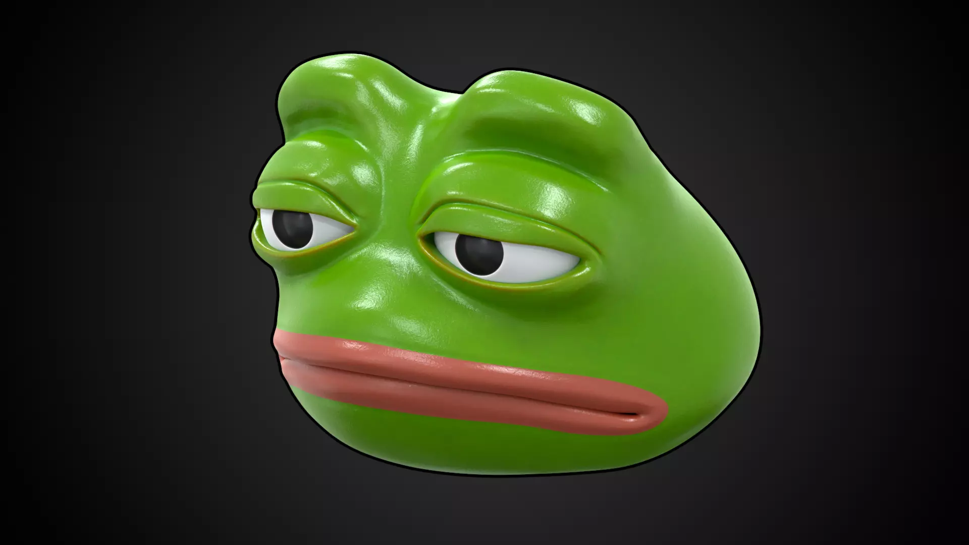 This is the basic head model of the pepe character with SAD facial expression. In the Blender file it is divided into 2 different collections where the Eyes are separate and combined to the head. Depending on your needs, you can use a combined or separate model of the eyes with the head model.