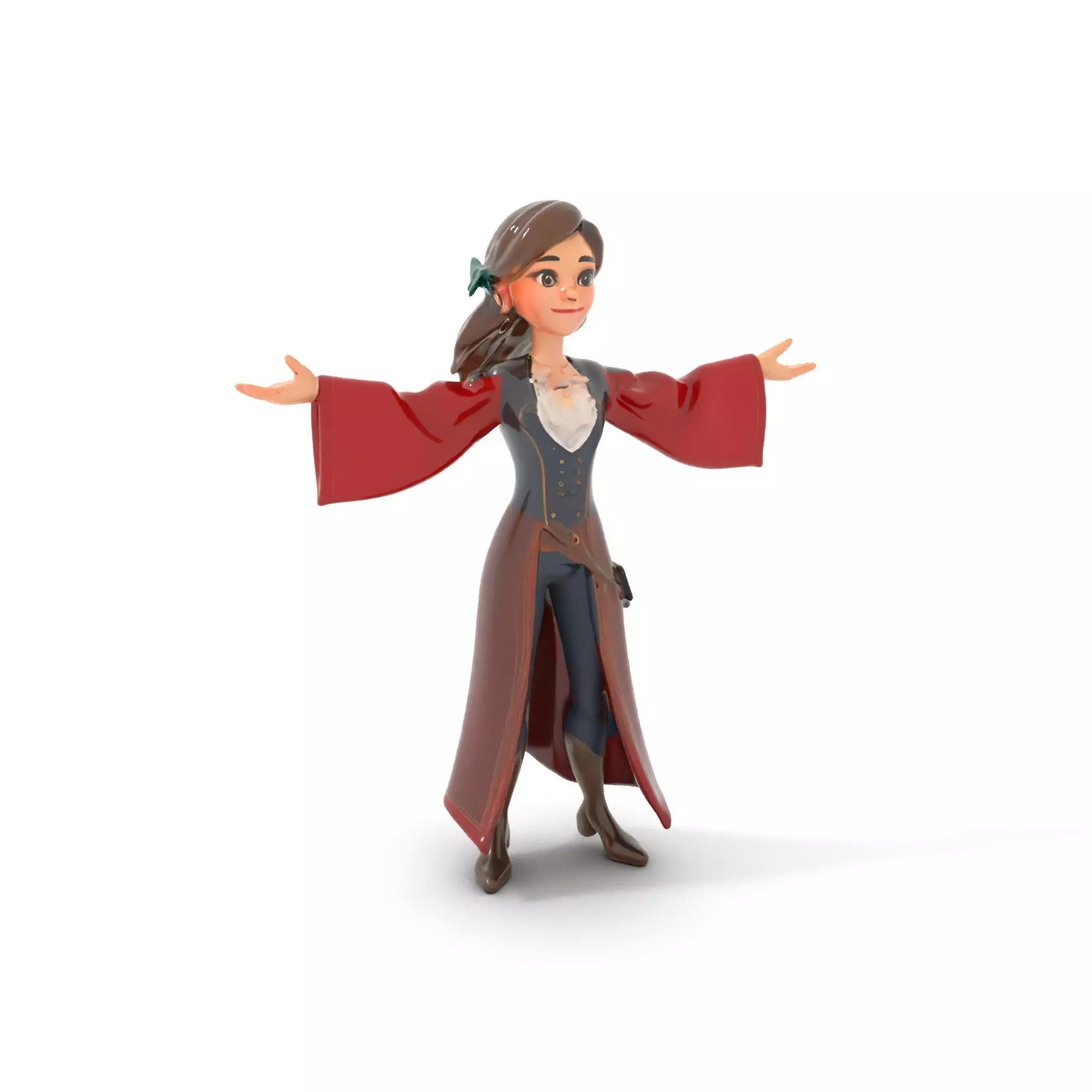 Pirate Adventurer Female Character Rigged and Animated Low-poly 3D model