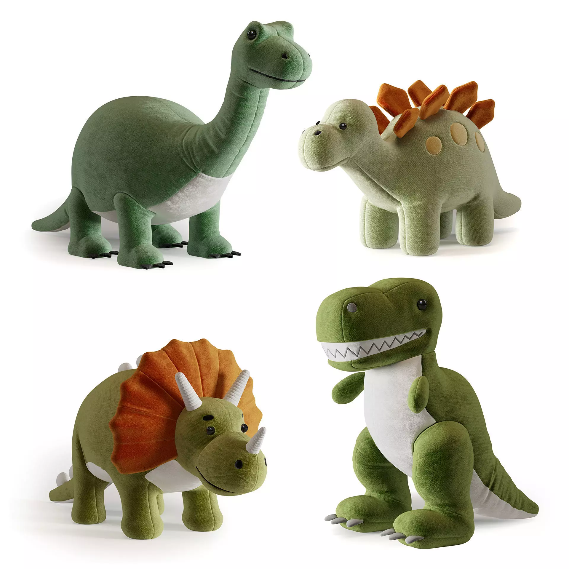 Plush toys set dinosaurs-Tyrannosaurus Rex-Triceratops-Diplodocus-Stegosaurus