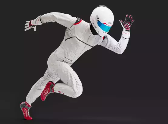 This high quality racing driver character 3D model features a realistic full body racing suit with detailed fabric folds, clean seams, and a professional motorsport helmet. Designed with a dynamic and athletic silhouette, this asset is ideal for games, cinematic renders, animations, simulations, VR and AR projects.