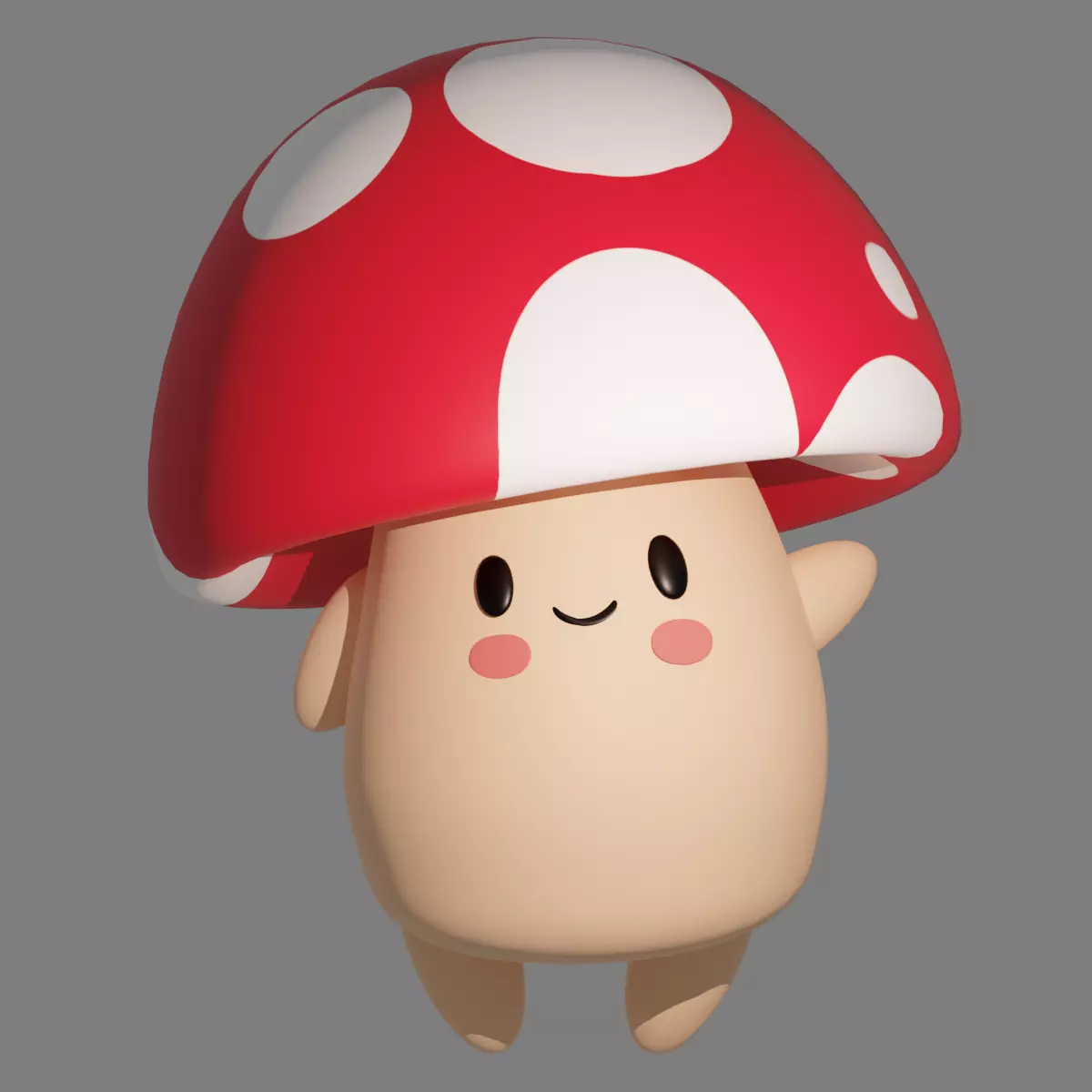 Rigged Mushroom Cartoon Character Low-poly 3D model