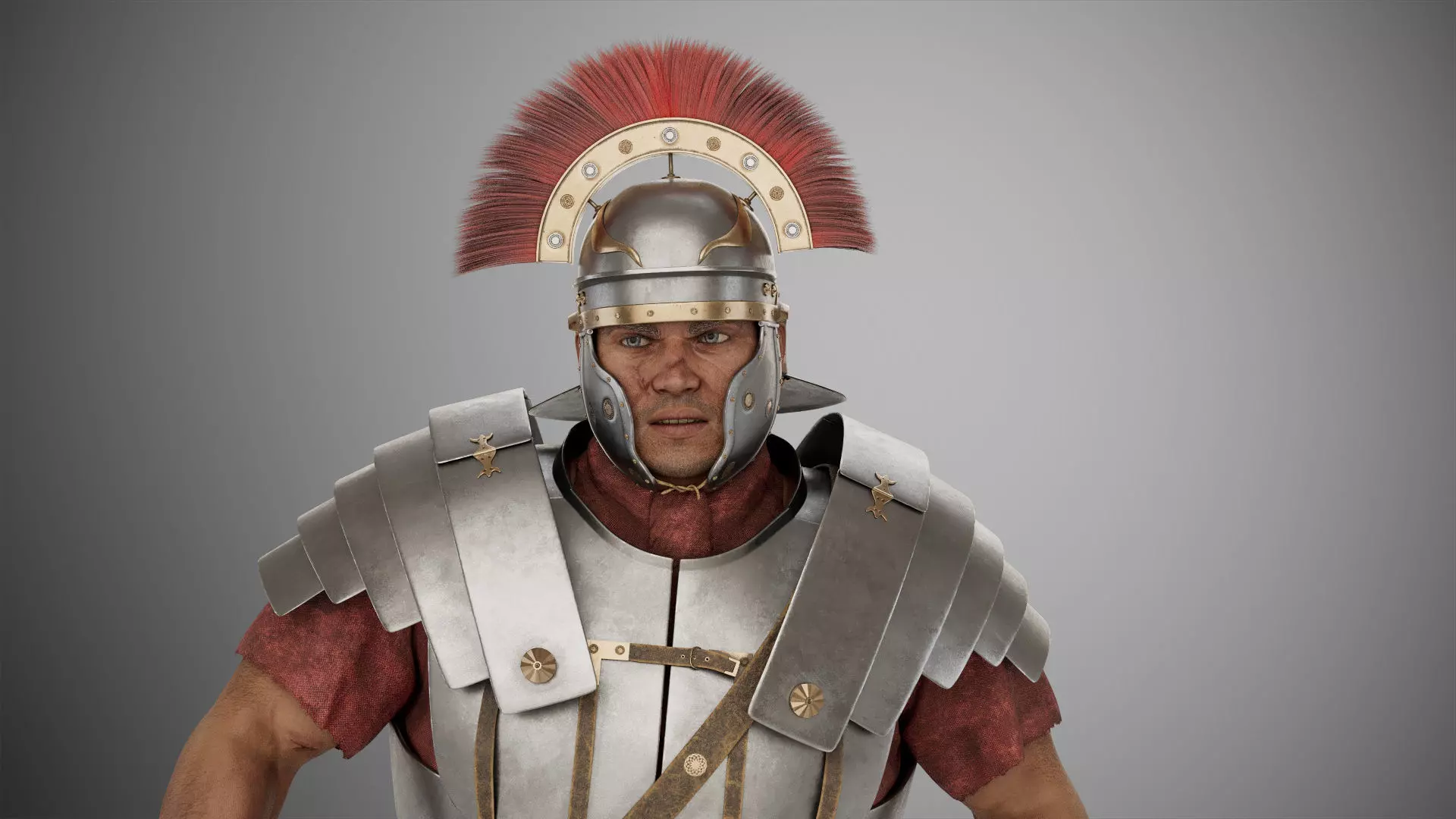 Here you will find a Roman soldier with the rank of Centurion.