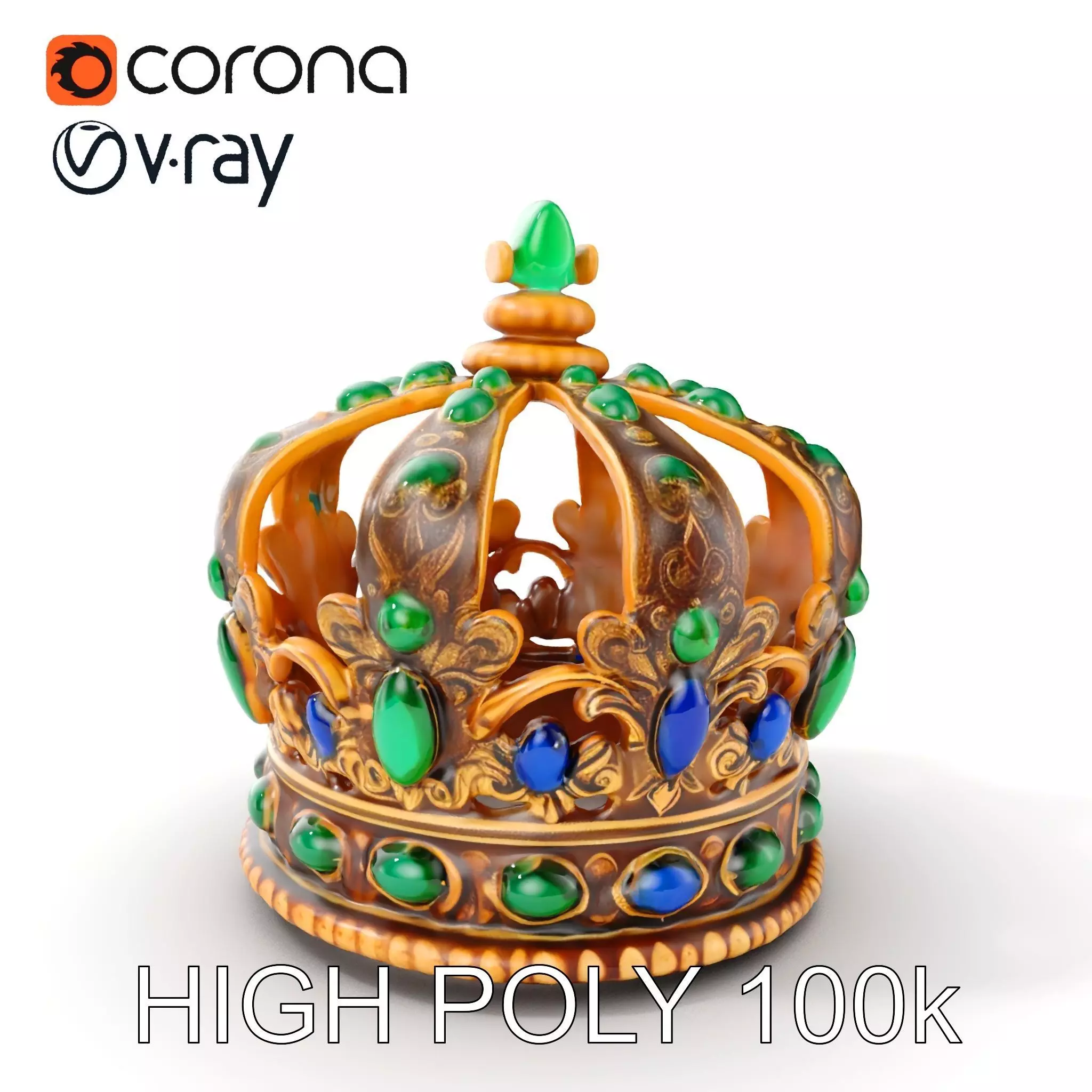 This Royal Crown 3D Model Pack features highly detailed crown models ideal for historical recreations, gaming, and cinematic productions. With the flexibility of three levels of detail, this model pack caters to mobile applications with 1000 triangles, environments at 10,000 triangles, and high-end productions with 100,000 triangles. PBR, Diffuse, NormalMap, and reflection/roughness/metallic textures ensure compatibility with modern rendering engines, such as 3ds Max, Maya, and game engines like Unity and Unreal. Models are accurately unwrapped with no overlapping UVs and textures are 4096x4096 in size. This stunning model is perfect for film, animation, and real-time applications. The first image is the reference used for creating the 3D model. It is important to carefully evaluate the quality of the model by examining the preview images that display the topology and polygonal mesh. These previews (WIRE and WEB 3D Preview) clearly demonstrate how accurately the model matches the original reference and how well the geometry has been executed. Enjoy animating this majestic crown - leave a like and comment if you find it useful!